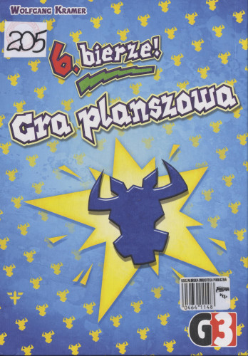 Zawartość pudełka: instrukcja, 1 dwustronna plansza, 24 karty akcji (niebieska głowa byka na rewersie), 12 kart szczęścia (zielona koniczyna na rewersie), 100 płytek z liczbami od 1 do 100, 2 znaczniki ,,Stop!", 6 kolorowych zasłonek, 6 kolorowych znaczników punktów.