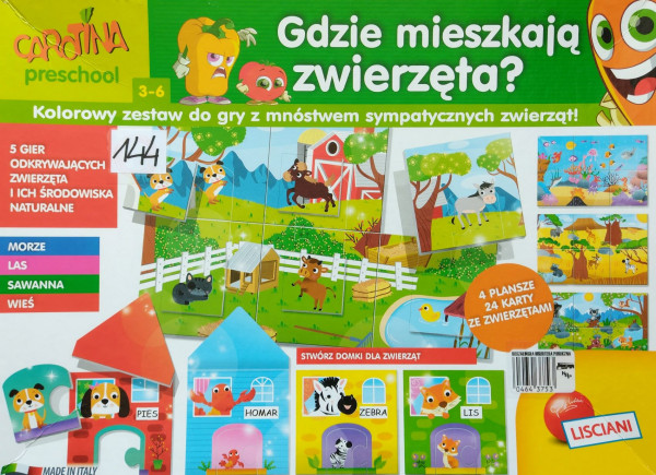 5 gier: mamy i zwierzęta, mozaika ze środowiskami naturalnymi, loteria z małymi zwierzątkami, loteria z kolorami, miasto zwierząt.