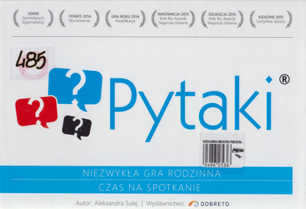 W pudełku : 96 PYTAKÓW, woreczek na PYTAKI, kostka z oczkami, kostka uczuć, 6 kart uczuć, zapamiętnik, instrukcja