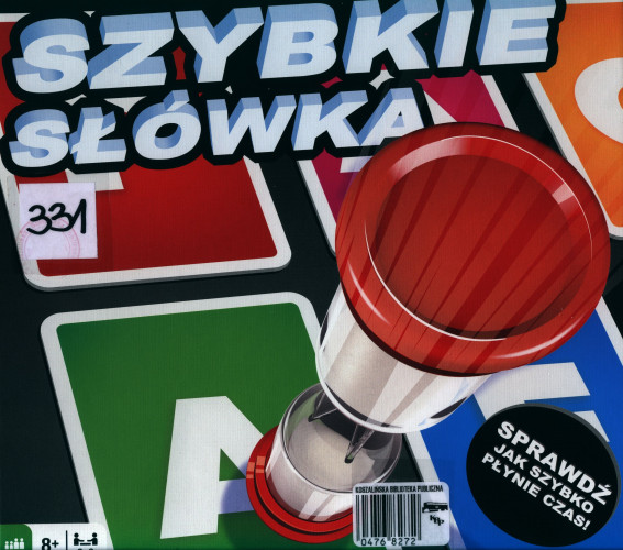 Zawartość pudełka: instrukcja, plansza na pionki, plansza na litery, klepsydra, 6 pionków, 150 kart (50 kart kategorii, 100 kart z literami).