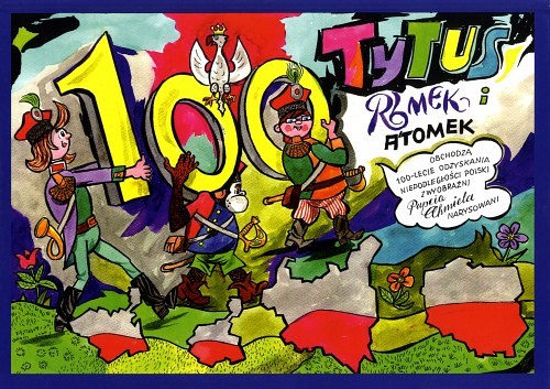 Przetarł oko (bo rysuje tylko prawym), umył czarne od tuszu dłonie i udał się na NIEWIECZNY spoczynek. Tymczasem okazało się, że to nie koniec. Dzięki światłym umysłom Romka i A’Tomka, Papcio uświadomił sobie, że nie może pominąć rysowania albumu o tak ważnym wydarzeniu, jak STULECIE NIEPODLEGŁOŚCI POLSKI i umieszczeniu w nim dalszego ciągu uczłowieczania Tytusa.