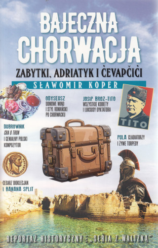 Zagrzeb – ustasze, Ante Pvelic i Franjo Tudjman; Pula – owoce morza, amfiteatr, gladiatorzy i żywe torpedy; Wyspy Brioni – Josip Broz Tito, luksusy dyktatora i jego kobiety; Nin, Krk, Rab – chorwackie Gniezno, głagolica i dalmacka szynka; Zadar, Porec, Rovnij, Pag – krwawa krucjata, Istria, ser i koronki ; Klis, Senj, Karlovac – Kozacy Adriatyku, twierdza Nehaj i czarny ołtarz; Plitvickie Jeziora – wodospady, wojna o Krajinę, rakija i govnarica; Solin i Split – miasto w pałacu, cesarz Dioklecjan i banana split; Sibenik, Hvar i Korcula – Marco Polo, weneckie klimaty i lawenda; Mljet, Trogir, Cavtat – Odyseusz, domowe wino i styl romański po chorwacku; Dubrownik – zapomniany polski kompozytor, „Gra o tron” i śmierć Jugosławii.