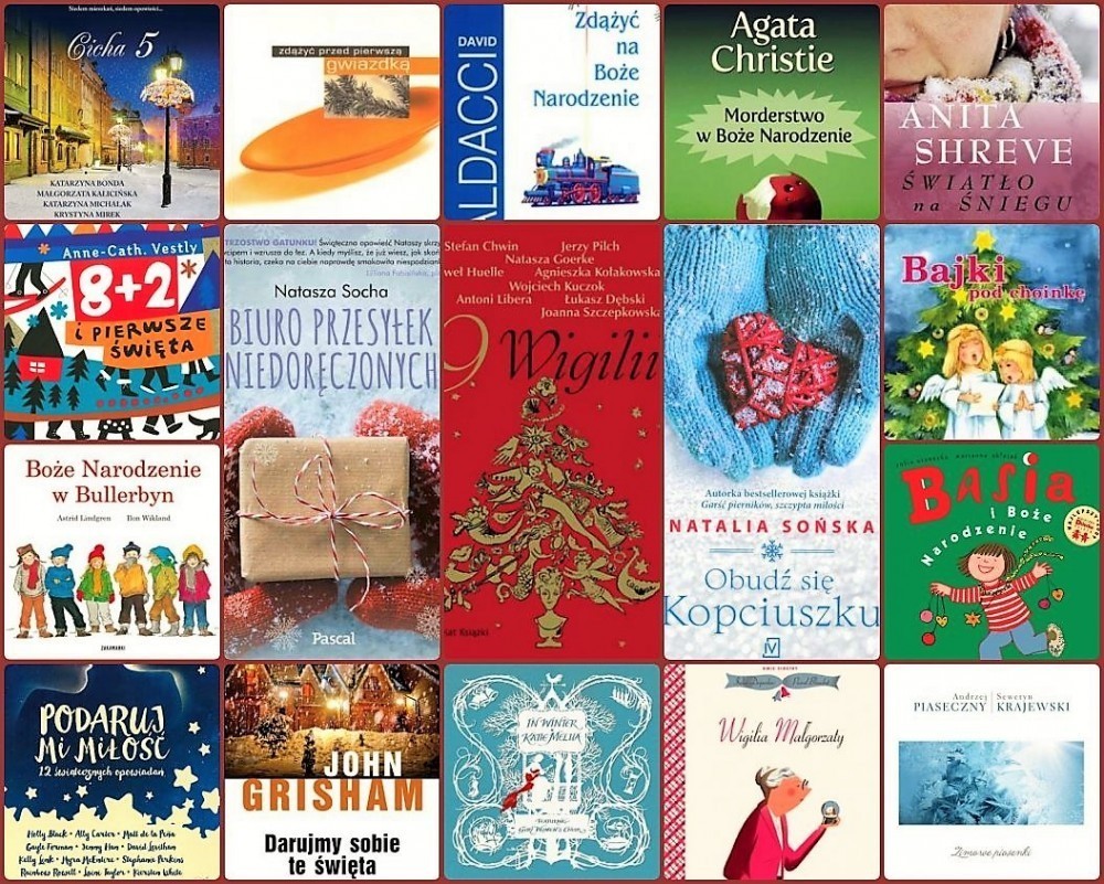 Świąteczny klimat odnajdziemy też w książkach: „Zdążyć przed pierwszą gwiazdką” Katarzyny Grocholi, „Zdążyć na Boże Narodzenie” Davida Baldacci’ego, „Morderstwo w Boże Narodzenie” Agathy Christie, „Światło na śniegu” Anity Shreve, „Biuro przesyłek niedoręczonych” Nataszy Sochy, antologii „9 Wigilii”, „Obudź się, Kopciuszku” Natalii Sońskiej, „Darujmy sobie te święta” Johna Grishama, czy „Podaruj mi miłość. 12 świątecznych opowiadań”.