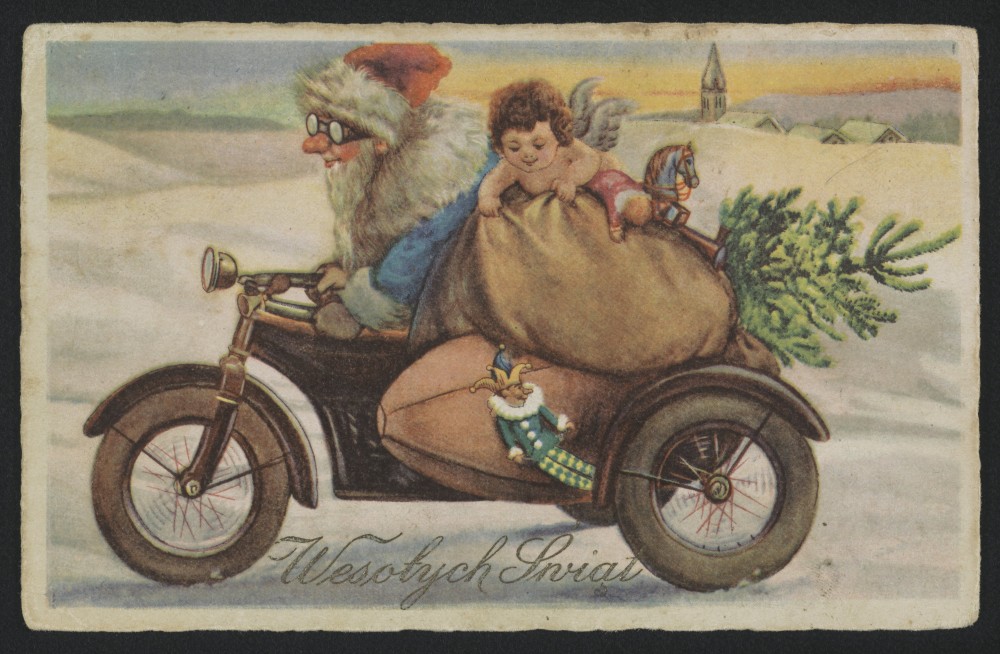 Ale to nie koniec atrakcji – znajdziemy tu bardzo bogaty zbiór pocztówek z epoki, także świątecznych. Jeśli zachcecie Państwo wysłać taką „przedwojenną” kartkę z życzeniami, na pewno będzie najoryginalniejsza i jedyna. Te skany można pobrać i wykorzystać, więc do dzieła!