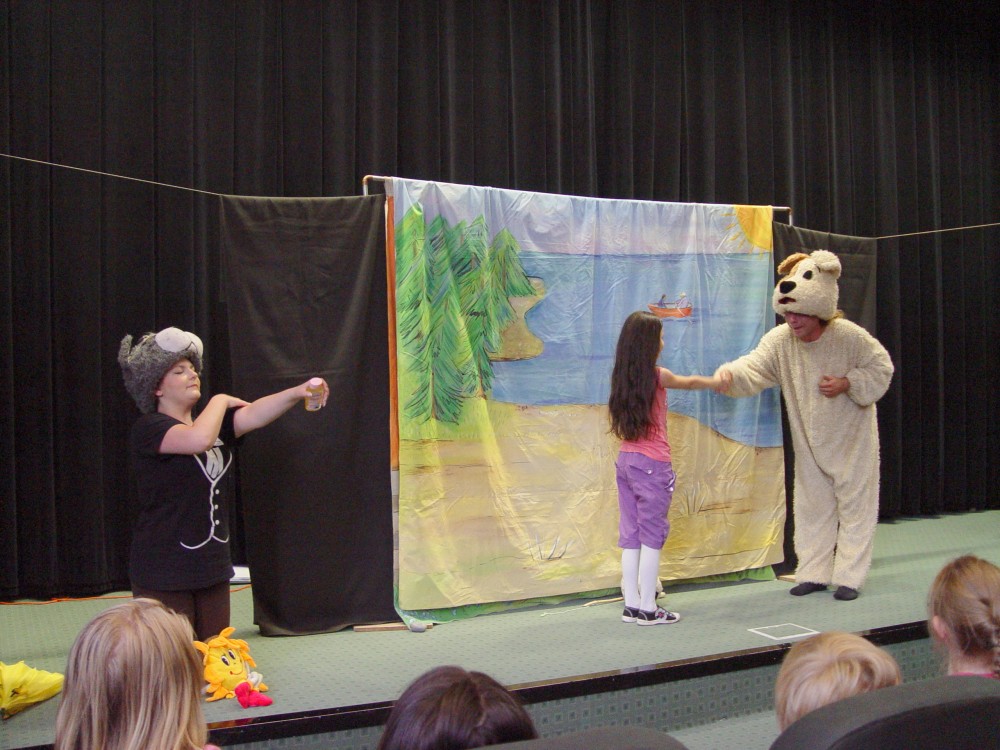 (zd.:25-lipca-duet.jpg , podpis : Przedstawienie teatru DUET z Krakowa w Koszalińskiej Bibliotece Publicznej)