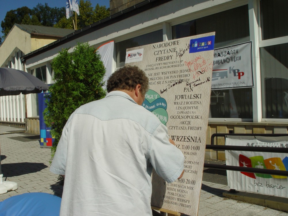 7 września Koszalińska Biblioteka Publiczna włączyła się w Narodowe Czytanie Fredry organizując maraton czytania Pana Jowialskiego, na placu przed KBP oraz w autobusach. Cały tekst Pana Jowialskiego czytała młodzież ze Studium Poezji i Piosenki im. Haliny i Krzysztofa Ziembińskich przy CK105 w Koszalinie, zaś zawarte w nim znane bajki, takie jak „Paweł i Gaweł”, „Małpa w kąpieli” czytali między innymi : przedstawiciele władz miasta z Prezydentem Koszalina Piotrem Jedlińskim na czele, radni Rady Miejskiej, przysłuchujący się mieszkańcy miasta. Ponadto w pobliskiej lodziarni serwowano lody o nazwach „Zemsta”, „Paweł i Gaweł”, „Motyl” i in.