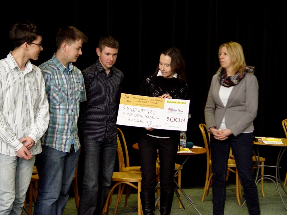 20 marca odbył się Międzyszkolny Turniej Wiedzy o prawach człowieka skierowany do gimnazjalistów. Uczestniczyło w nim 7 drużyn po 3 osoby. Turniej został poprzedzony prezentacją multimedialną o prawach człowieka w celu utrwalenia wiedzy uczestników.