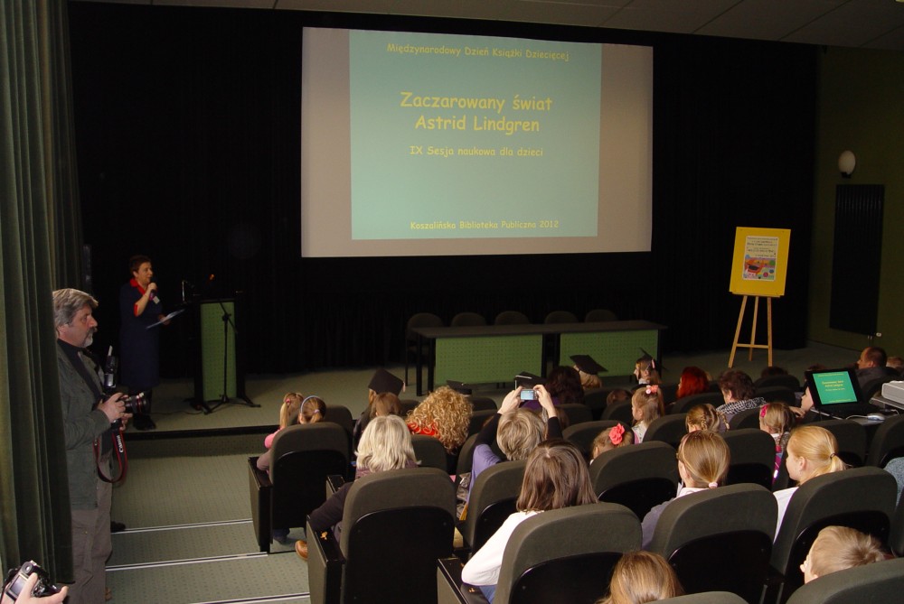 2 kwietnia z okazji Międzynarodowego Dnia Książki Dziecięcej w Koszalińskiej Bibliotece Publicznej odbyła się IX dziecięca sesja „naukowa” pt. „Zaczarowany świat Astrid Lindgren”. Dziesiąta rocznica śmierci Autorki Pippi Pończoszanki stała się pretekstem żeby przypomnieć najsłynniejszą bodaj, pisarkę dziecięcą. Honorowym gościem sesji była pani Grażyna Bąkiewicz, polska pisarka literatury młodzieżowej, która później miała spotkania autorskie z czytelnikami bibliotek powiatu i Koszalina. Podczas sesji zostały ogłoszone wyniki konkursu ilustratorskiego „Świat namalowany według Astrid Lindgren”. Nagrody książkowe z własnoręcznymi dedykacjami wręczyła zaproszona Autorka.