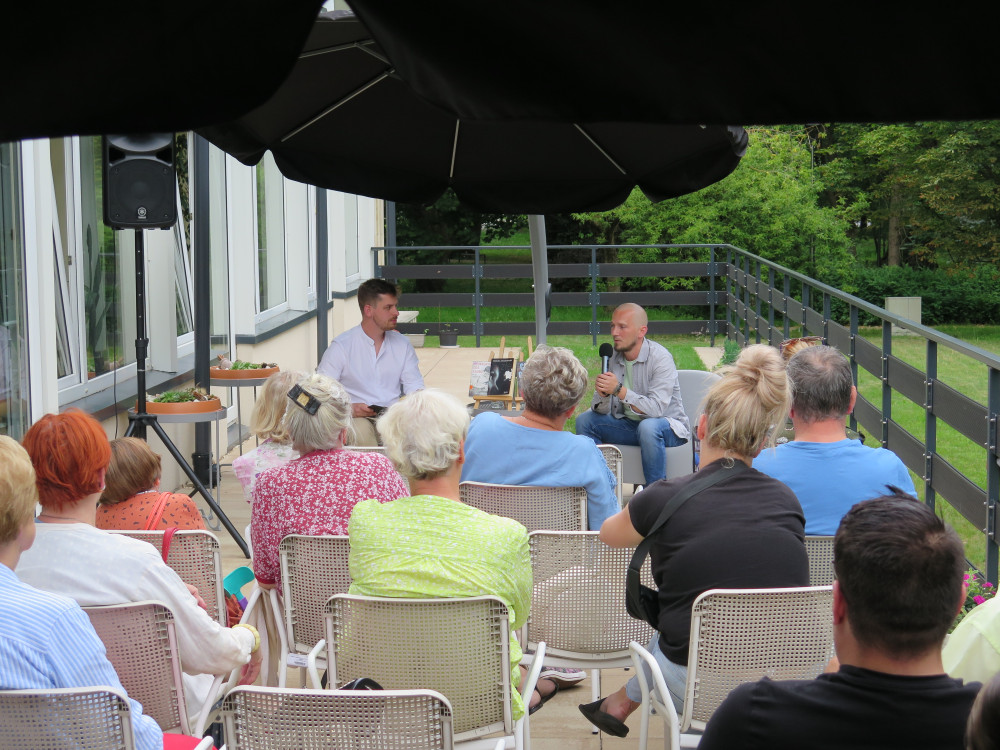 13 lipca na tarasie "Pod Bookiem" Koszalińskiej Biblioteki Publicznej odbyło się spotkanie autorskie z Michałem Janem Chmielewskim - autorem książek sensacyjnych, kryminałów i thrillerów. Podczas rozmowy autor miał okazję podzielić się z uczestnikami spotkania tajnikami swojej pracy twórczej, opowiedzieć o inspiracjach oraz metodach pracy. Nie zabrakło dyskusji o nostalgii związanej z latami 90. XX wieku, która wybrzmiewa w powieściach Chmielewskiego, a także o fikcyjnym Baskin Zachodnim, w którym rozgrywa się akcja większości z jego książek. Przedstawione zostały także przyszłe plany wydawnicze autora.