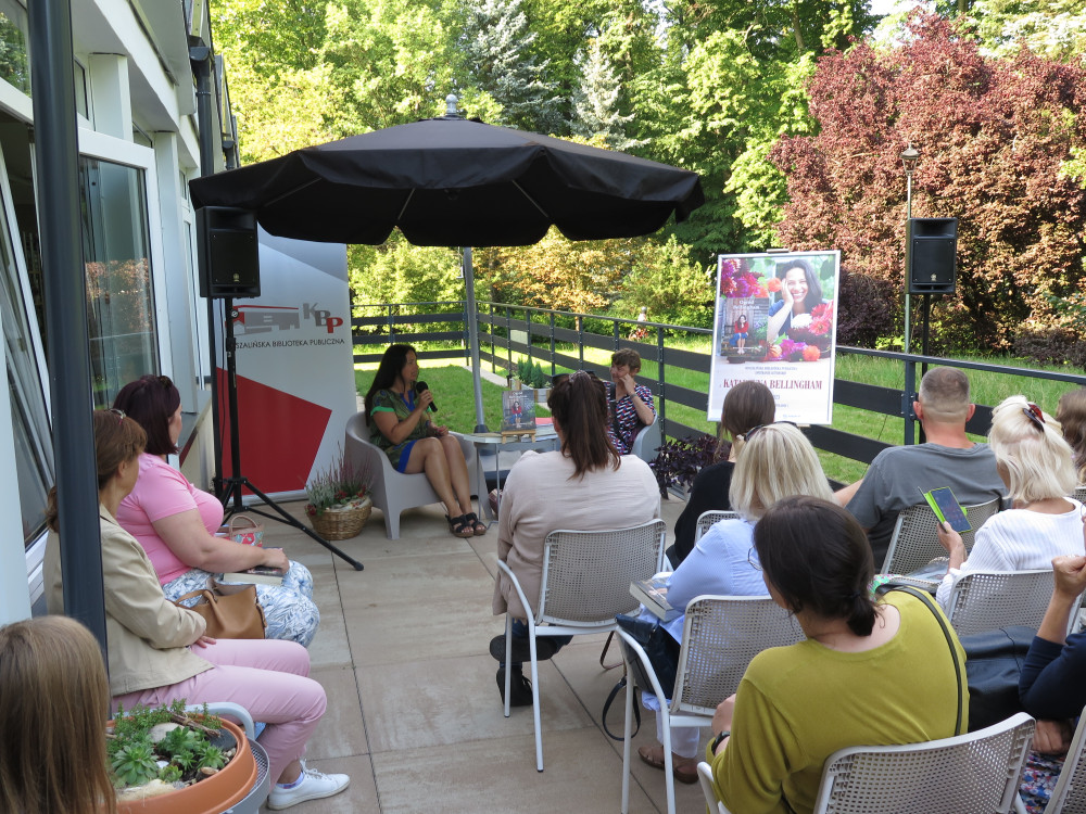 24 sierpnia na tarasie „Pod Bookiem” Koszalińskiej Biblioteki Publicznej odbyło się spotkanie autorskie z Katarzyną Bellingham - specjalistką od ogrodów ekologicznych w Polsce. Autorka opowiedziała słuchaczom o ciekawych aspektach ogrodnictwa naturalnego, o różnicach w uprawianiu roślin w Polsce i Anglii, przestrzegała również przed kupowaniem sadzonek z niepewnych źródeł, ponieważ w ten sposób najczęściej możemy przynieść do domu niechcianych towarzyszy. Wspominała również o swoim ogrodzie w Zgorzałem, w którym organizuje dni otwarte, zwiedzanie, warsztaty ogrodnicze oraz kiermasze sadzonek.