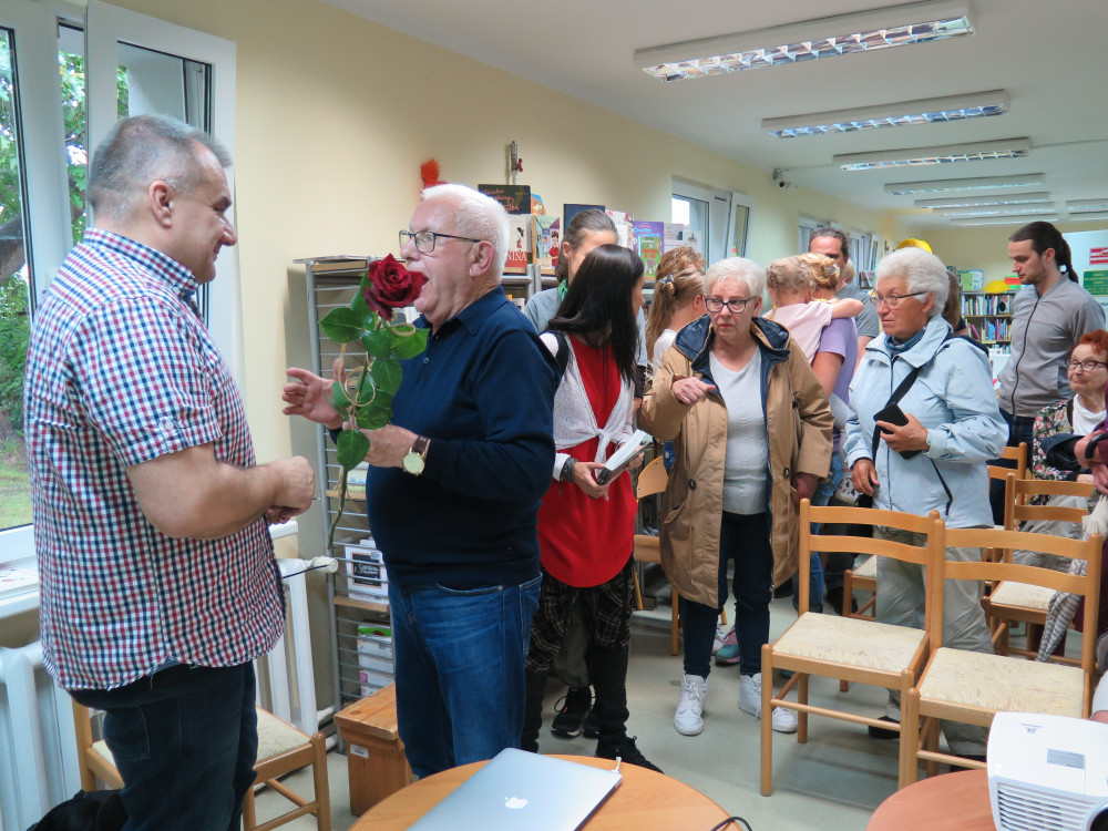7 lipca w Filii nr 9 Koszalińskiej Biblioteki Publicznej odbyło się otwarcie zrewitalizowanego w ramach Budżetu Obywatelskiego ogrodu pn. „Nasz wspólny park”. Choć deszczowa pogoda nie pozwoliła na przeprowadzenie otwarcia na zewnątrz, to wielu mieszkańców osiedla z chęcią przechadzało się po ogrodzie, który głównie dzięki ich głosom przeszedł metamorfozę. Wykonane zostały nowe alejki, zadbano o zieleń, powstała również łąka kwietna, mural i mini plaża. Otwarcie uświetniło spotkanie autorskie z Marcinem z Lasu, czyli Marcinem Kostrzyńskim - leśnikiem, filmowcem, obserwatorem dzikiego życia i obrońcą praw zwierząt, autorem audycji telewizyjnych i książek m.in. „Puszcza”, „Gawędy o wilkach i innych zwierzętach”. Podczas spotkania Marcin z Lasu opowiadał o swoim życiu na uboczu, gdzie otacza go tylko dzika natura. Pokazywał nagrane przez siebie ukrytą kamerą filmy z leśnego życia. Nie zabrakło również ciekawych anegdot o wilkach, które uwielbiają bawić się kablami USB oraz o smarowaniu kamery masłem w celu zwabienia zwierząt do nagrania. Publiczność do łez rozbawiły także zbudowane przez autora kamery w postaci mechanicznego wilka i bobra.