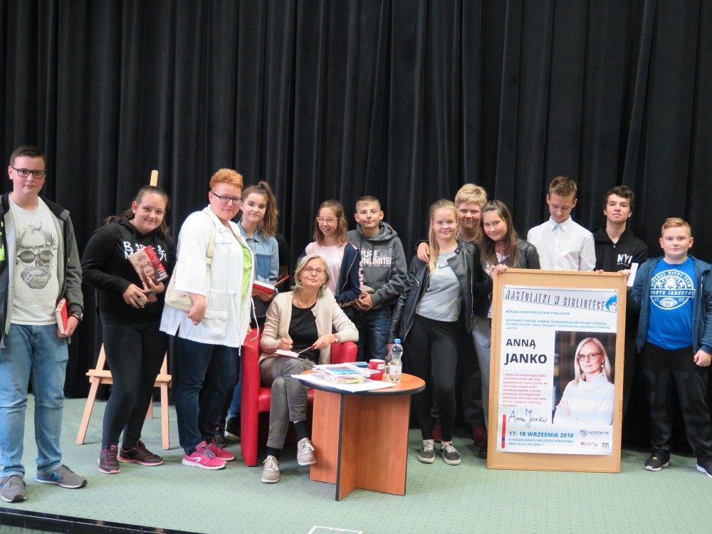 17-18 września w ramach cyklicznej akcji Nastolatki w Bibliotece siódmoklasiści wzięli udział w spotkaniu autorskim z Anną Janko pisarką, poetką autorką m in. „Małej zagłady” oraz zapoznali się z ofertą biblioteki w czasie lekcji bibliotecznych przygotowanych specjalnie z tej okazji.
