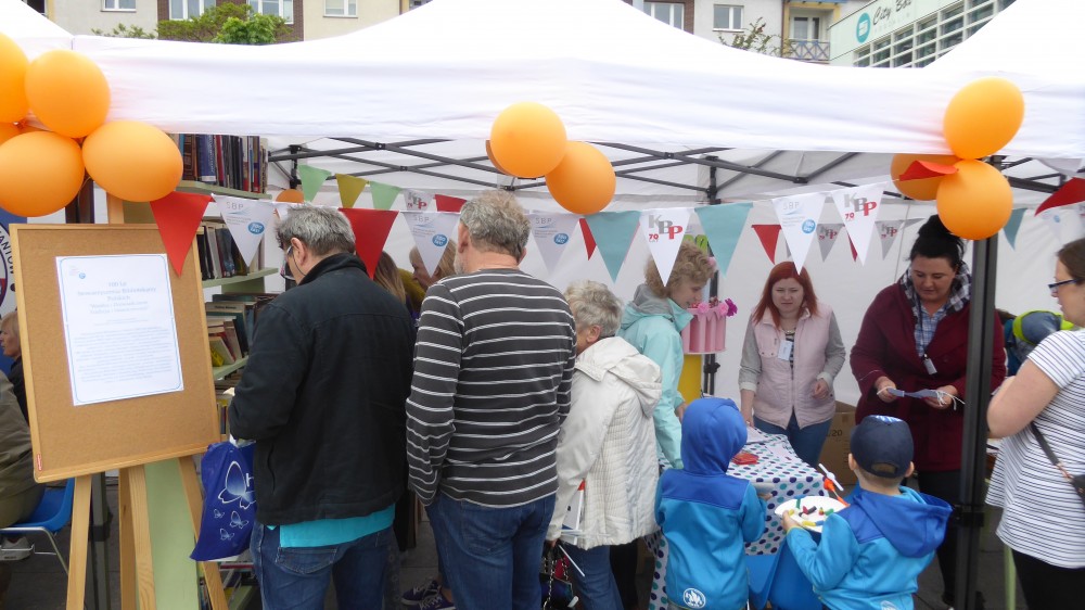 20 maja w ramach Dni Koszalina Koszalińska Biblioteka Publiczna zorganizowała stoisko promocyjne na placu pod ratuszem. Na stoisku rozdawaliśmy naklejki, zakładki do książek z hasłami promującymi czytanie, zachęcaliśmy do rozwiązania krzyżówki i bezpłatnie rozdawaliśmy wydawnictwa regionalne oraz postawiliśmy regał bookcrossingowy.