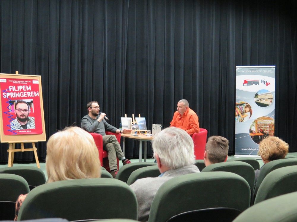 17 grudnia w Koszalińskiej Bibliotece Publicznej w ramach „Miesiąca z Reportażem” odbyło się spotkanie autorskie z Filipem Springerem, świetnym reportażystą młodego pokolenia. Spotkanie połączono z promocja jego twórczości, a szczególnie ostatniej książki „13 pięter”.