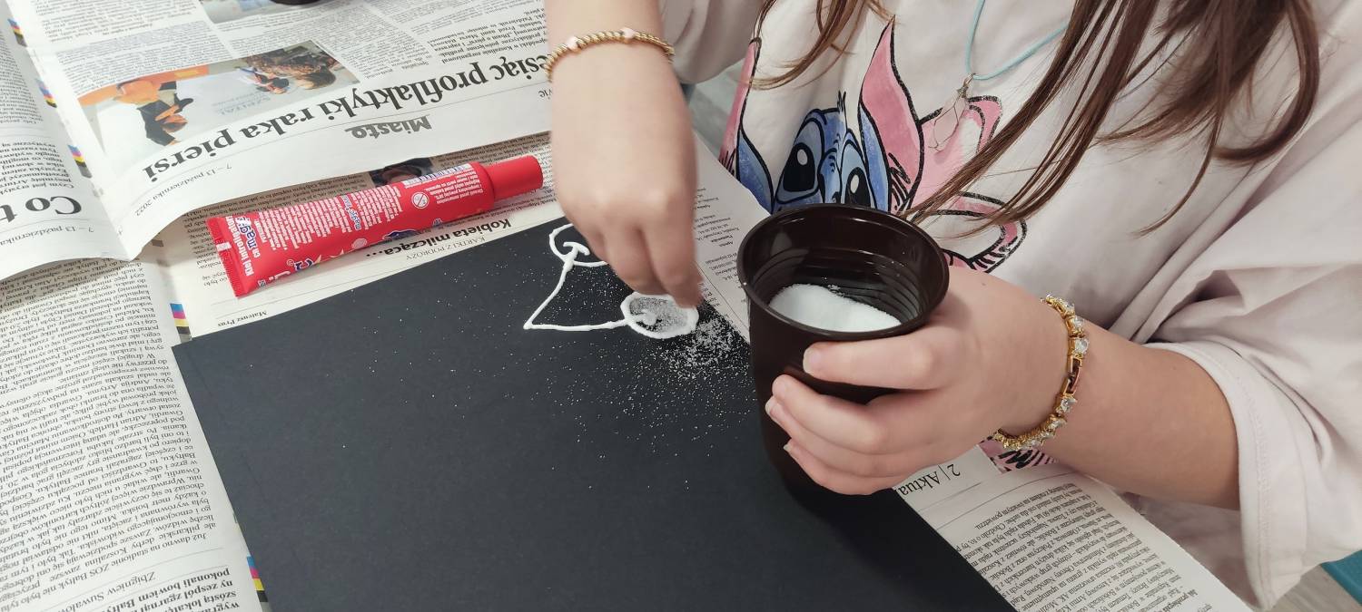 - wspólnie odkrywaliśmy tajniki przyrody, oglądaliśmy zwierzęta i tworzyliśmy zimowe krajobrazy z kleju, soli i wody, a przy okazji zgadywaliśmy hasła w kalamburach,