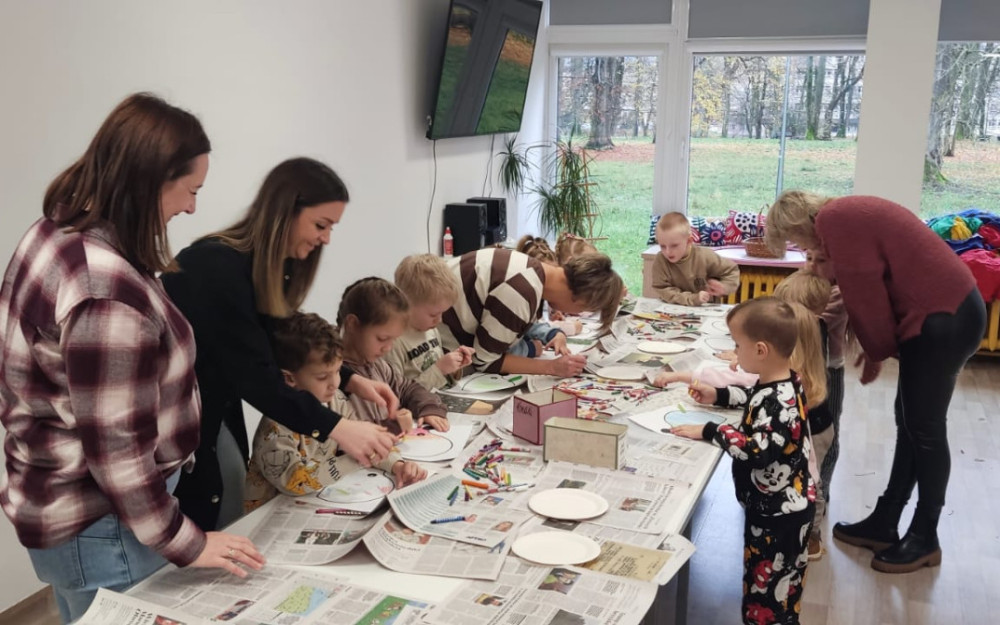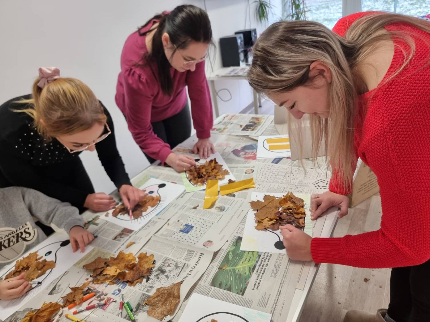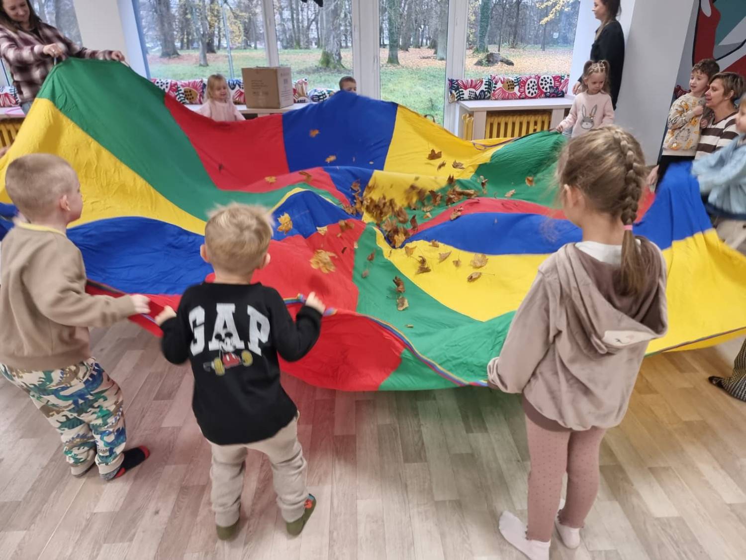 Po przejściu po sensorycznej ścieżce przedszkolaki wzięły udział w kasztanowej zabawie, podczas której wykorzystaliśmy różne jesienne skarby. Na zakończenie odbyła się kreatywna część zajęć – dzieci stworzyły uroczego jeża z liści, wykazując się pomysłowością i dużym zaangażowaniem.