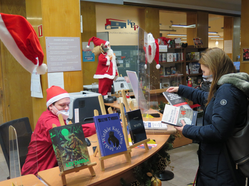 Na każdego czytelnika, który wypożyczył w piątek książkę, czekały pod choinką prezenty niespodzianki. Ileż zabawy było w wybieraniu zapakowanych w papier książek tylko po kształcie i wadze! Ci, którzy postanowili zapisać się tego dnia do biblioteki, dostali limitowane wersje naszych kart - specjalnie podbite przez samego Mikołaja.
