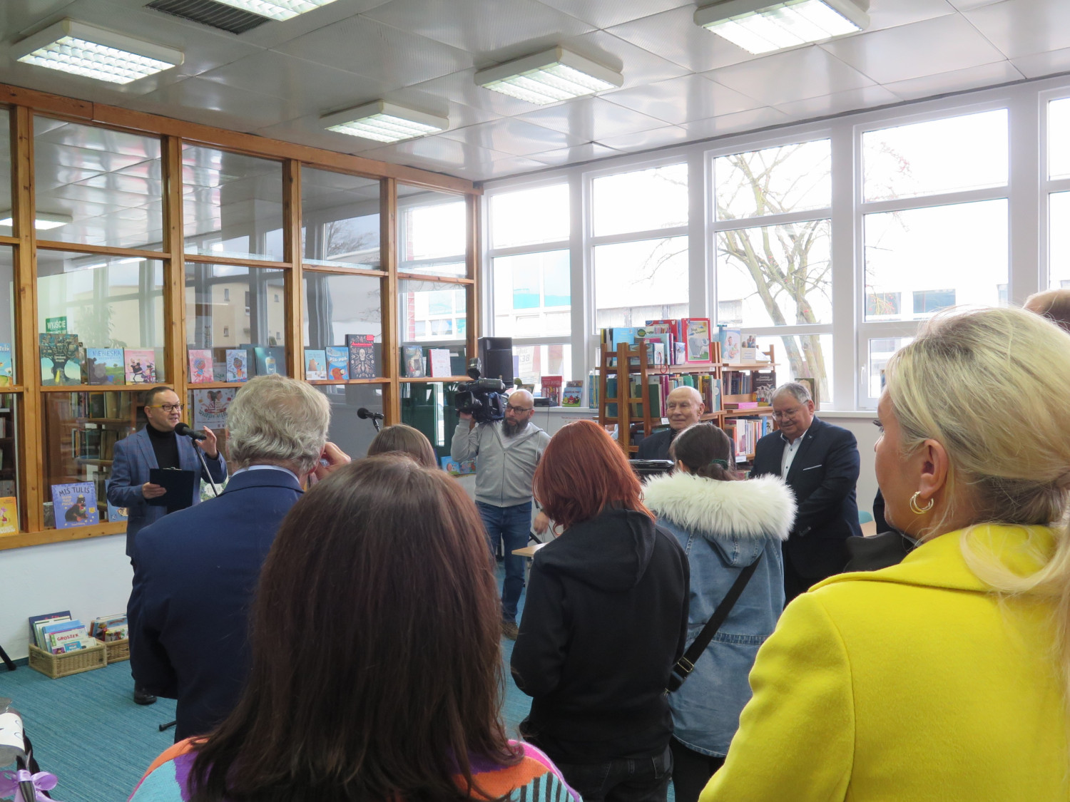 24.11 odbyło się oficjalne otwarcie wyremontowanej Filii nr 12. Wśród przybyłych gości nie zabrakło Zastępcy Prezydenta Miasta Przemysława Krzyżanowskiego, koszalińskich radnych: Katarzyny Czarkowskiej oraz Ryszarda Tarnowskiego, Leszka Ślipka, prezesa KSM „Na Skarpie” czy dyrekcji Koszalińskiej Biblioteki Publicznej: dyrektora Dariusza Pawlikowskiego oraz zastępcy dyrektora Beaty Sawy-Jovanoskiej.