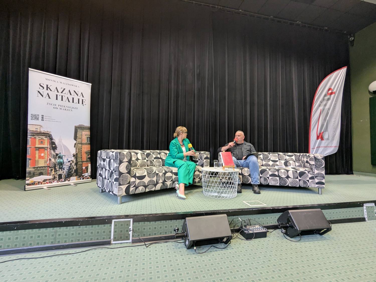 3 czerwca w sali kinowej KBP odbyło się spotkanie autorskie z Moniką Malinowską promującą swoją książkę pt. „Skazana na Italię”. Podczas spotkania prowadzonego przez Piotra Pawłowskiego autorka opowiadała o swoich pierwszych wizytach we Włoszech i początkach fascynacji tym krajem. Odpowiadała na liczne pytania dotyczące włoskiego społeczeństwa, zróżnicowanego kulturowo w różnych regionach. Zdradziła co ją urzekło w Italii i jej mieszkańcach. Przytaczała liczne historie dotyczące zawartych we Włoszech przyjaźni i bliskich relacji, które przetrwały długie lata. Podczas rozmowy nie zabrakło również odniesień do kulinariów i ulubionych potraw autorki. Monika Malinowska opowiadała również o tym jak promuje swój rodzinny Szczecin w Italii i jak odbierają Polskę jej włoscy przyjaciele.