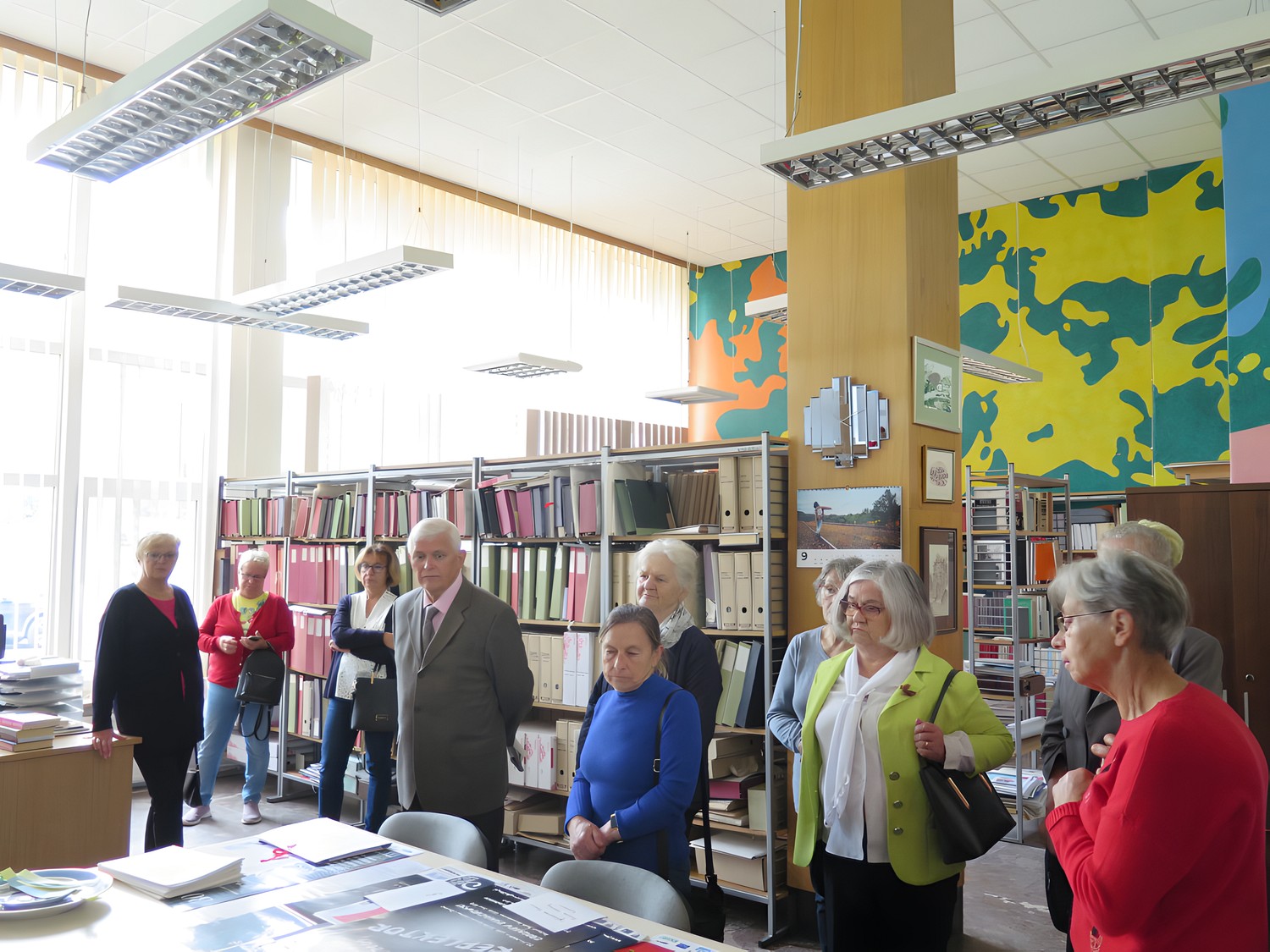 Spotkanie rozpoczęło się oprowadzeniem po bibliotece, podczas którego Anna Kowal nie tylko pokazała uczestnikom miejsca, które nie są zwykle dostępne dla Czytelników, takie jak magazyn zbiorów, ale także opowiedziała o historii budynku oraz o pracy bibliotekarzy "od kuchni". Małgorzata Weiss opowiedziała o historii Fonoteki oraz o planach jej rewitalizacji, dzięki zgłoszeniu projektu w ramach Budżetu Obywatelskiego (zachęcamy do glosowania na projekt nr 7 pod linkiem).