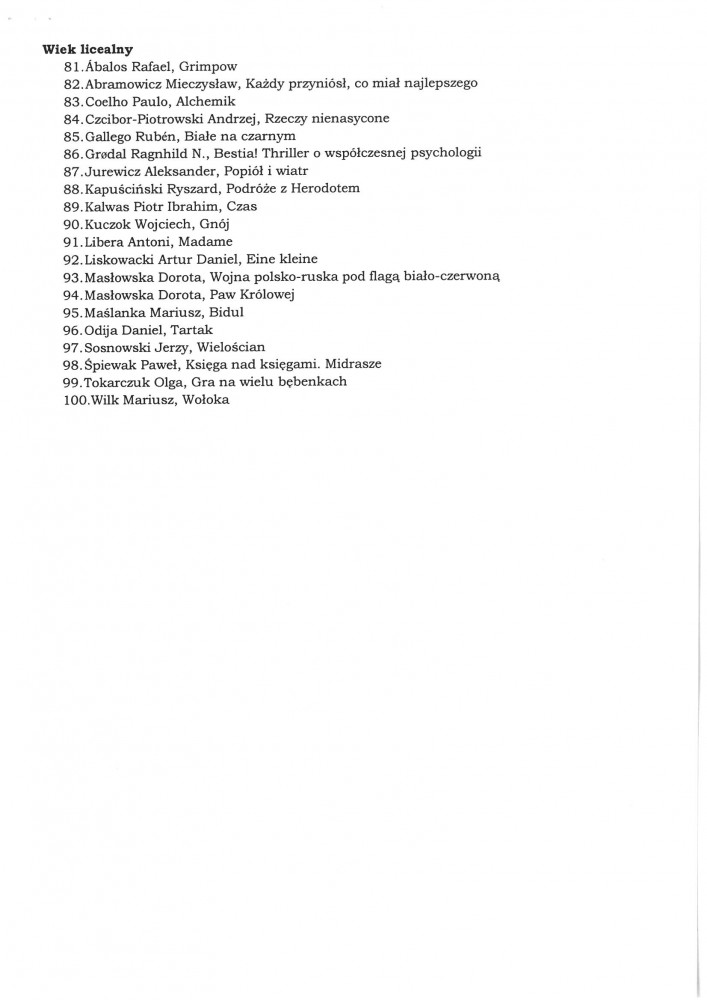 W załączniku przedstawiam ów kanon 100 wybranych przez profesora książek.