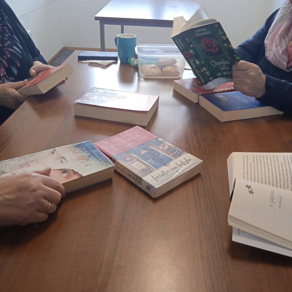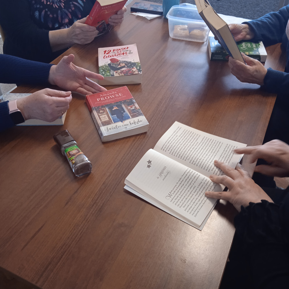 Coraz bliżej święta, coraz bliżej święta… Tak! – to już ten czas. Na dzisiejszym spotkaniu również udzielił się nam wszystkim świąteczny nastrój. Nie zabrakło rozmów o potrawach, prezentach i planach porządkowych w okresie przedświątecznym. Ileż to ciekawych rzeczy można się dowiedzieć i poznać zwyczaje panujące u innych osób. Było to bardzo inspirujące i ciekawe myślę dla nas wszystkich. Był też quiz i zabawa z cytatami związana z książkami obyczajowymi w klimacie świątecznym. Panie bawiły się świetnie, było śmiesznie i przyjemnie. Już czekamy na kolejne spotkanie – zapewne także w klimacie świątecznym ????