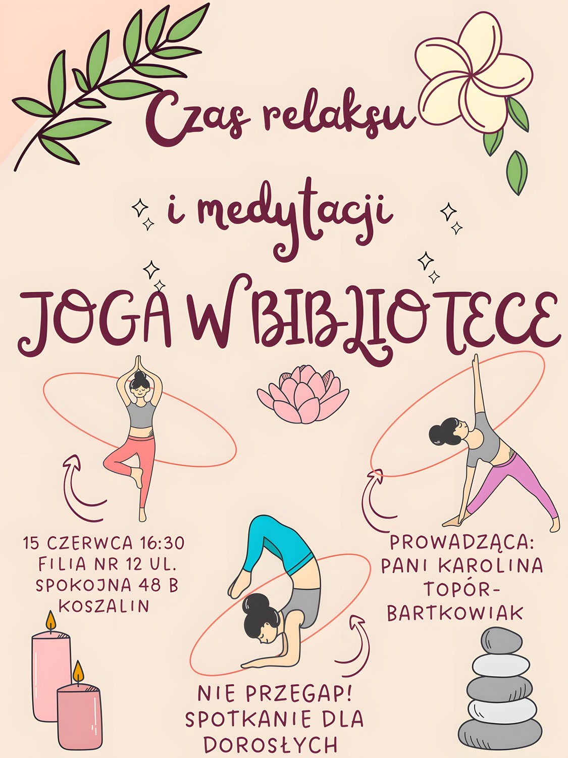 Zapraszamy dorosłych na jogę w bibliotece, którą poprowadzi nasza zaprzyjaźniona czytelniczka Karolina Topór- Bartkowiak. Prośba od prowadzącej o zabranie swoich mat.
