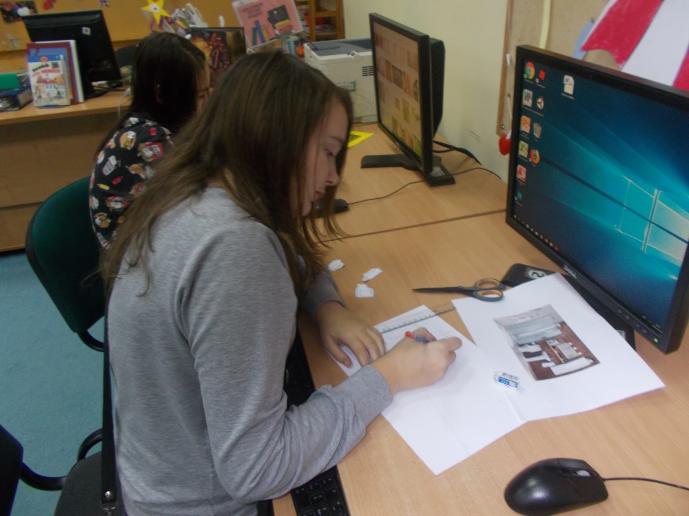 Wczoraj spotkaliśmy się z naszymi anglomaniakami, by poznać i utrwalić słownictwo po angielsku związane z domem. Dzieci z chęcią uczyły się przez zabawę, wymieniając rzeczy które mogą znajdować się w poszczególnych pomieszczeniach w domu. Miłośnicy języka angielskiego chętnie korzystali ze słownika internetowego, by poszukać znaczenia słów. Anglomaniacy zgodnie stwierdzili, że „wszędzie dobrze, ale w domu (at home) najlepiej”, więc z ogromnym zaangażowaniem zaprojektowały wylosowane przez siebie miejsca w domu. Niejeden architekt byłby z naszych rysowników dumny.