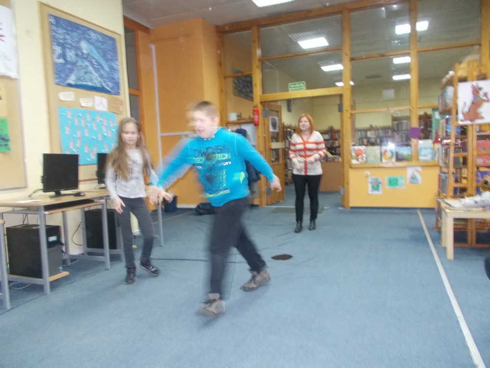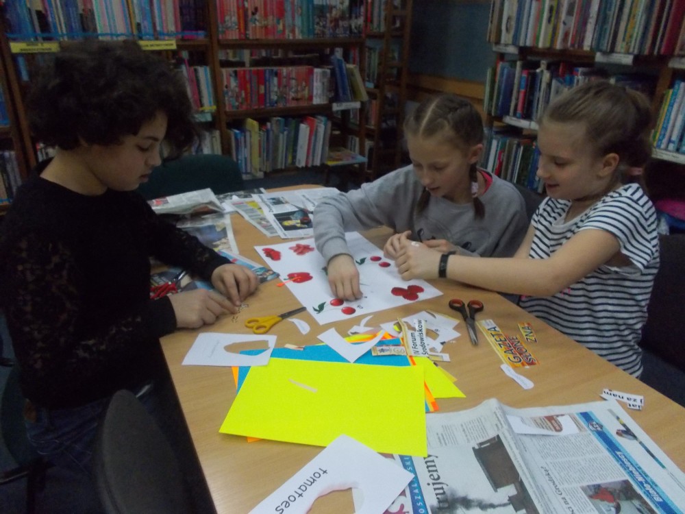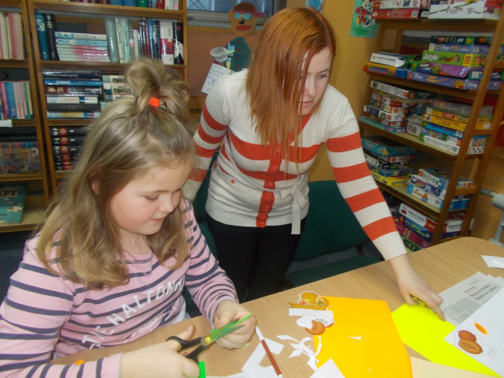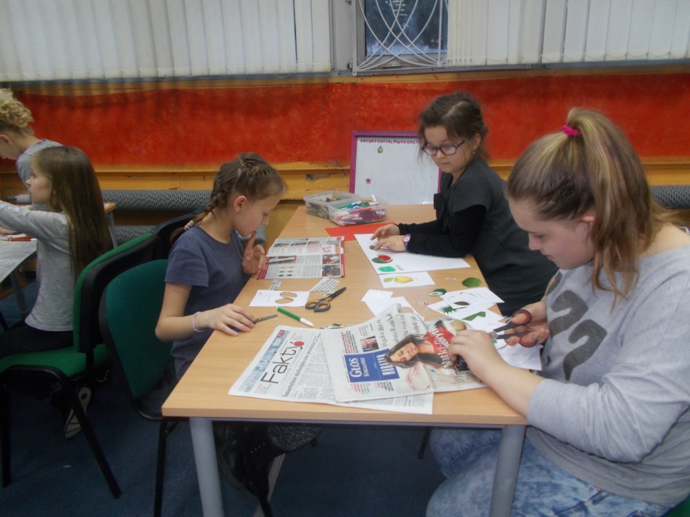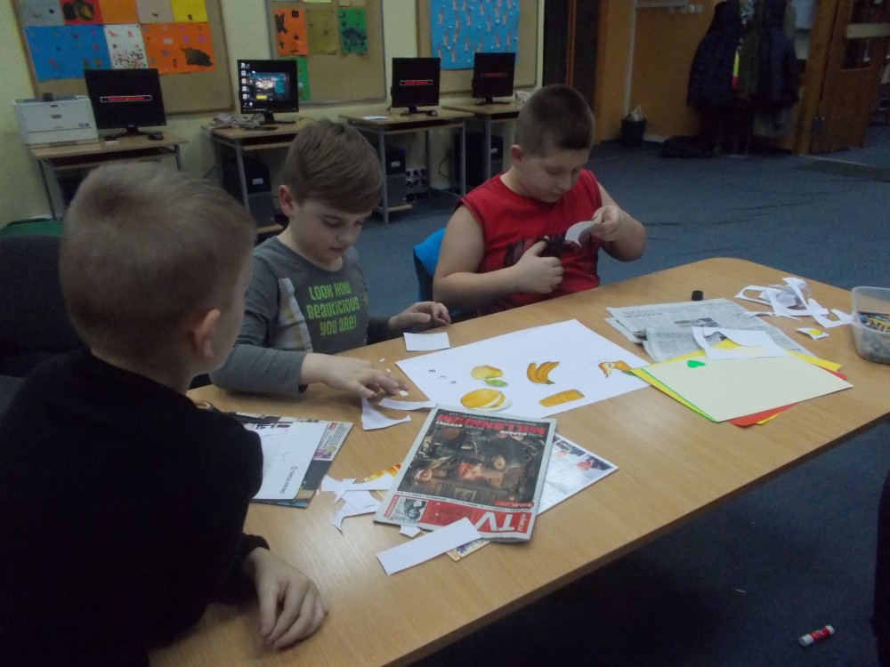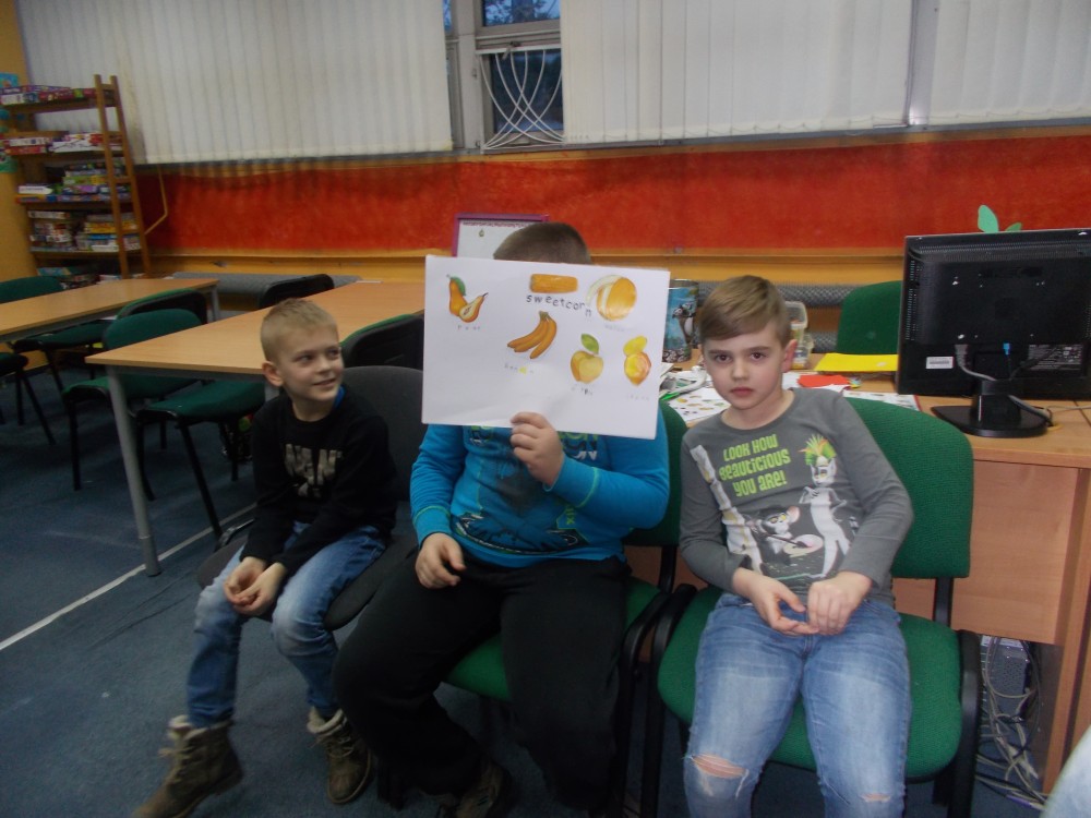 Tym razem podczas czwartkowych zajęć było inaczej niż zwykle. Nową inicjatywą są co miesięczne spotkania, podczas których uczestnicy uczą się angielskiego poprzez zabawę .To jedyne takie zajęcia wśród koszalińskich bibliotek, a sam pomysł zrodził się w oparciu o projekt Koszalińskiej Biblioteki Publicznej „Ameryka w twojej bibliotece”. Pierwsza lekcja już za nami. Zaczęliśmy od nazw kolorów, owoców i warzyw. Nie zabrakło zabaw ruchowych, a także zajęć plastycznych w grupach. Anglomaniacy uczyli się też korzystać ze słownika internetowego, sprawdzając nieznane im nazwy owoców i warzyw. Chętnie też powtarzały poprawną wymowę poznanych słów. Dzieci dały się porwać anglomanii, co widać na naszych zdjęciach.