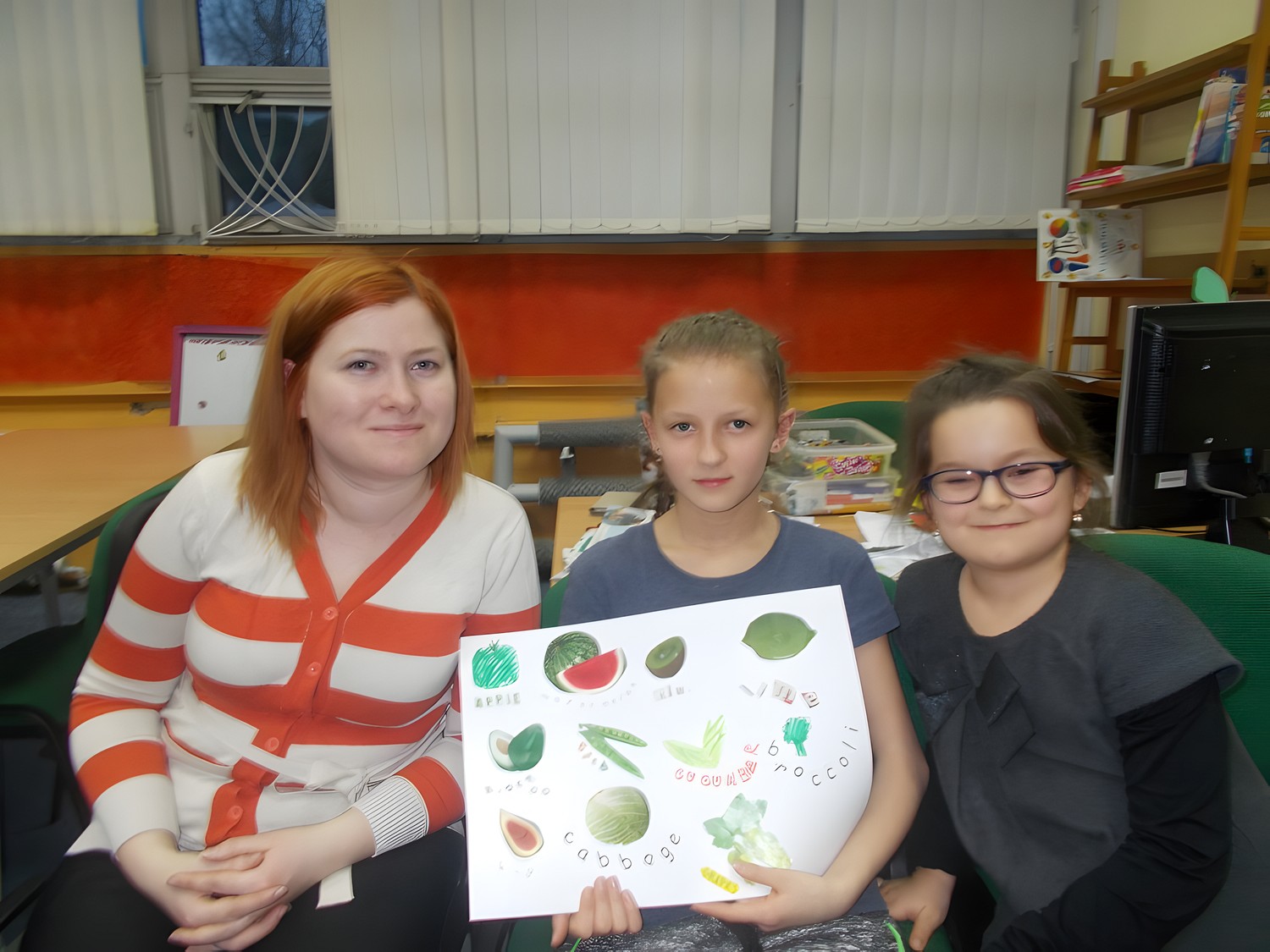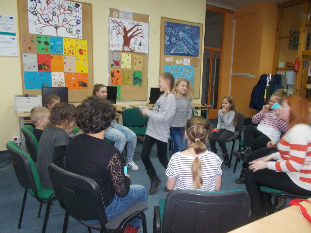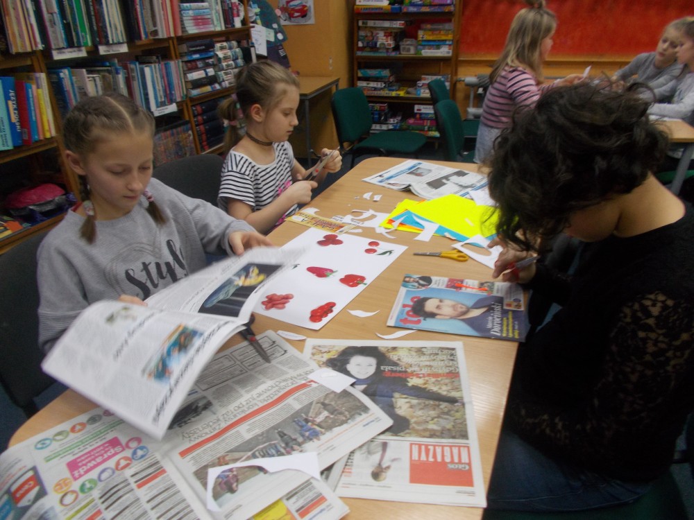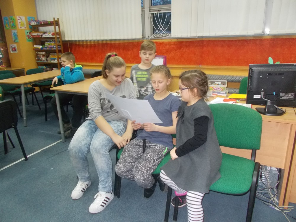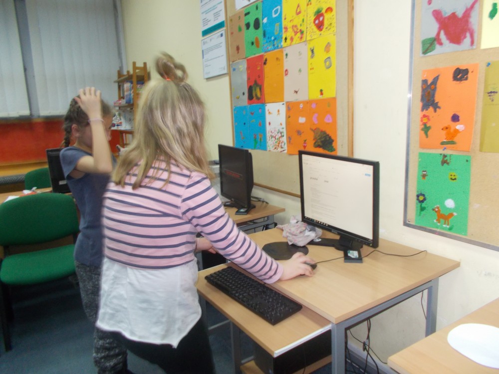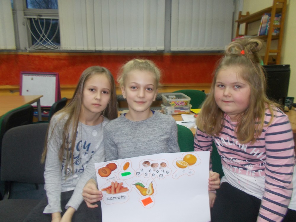 Tym razem podczas czwartkowych zajęć było inaczej niż zwykle. Nową inicjatywą są co miesięczne spotkania, podczas których uczestnicy uczą się angielskiego poprzez zabawę .To jedyne takie zajęcia wśród koszalińskich bibliotek, a sam pomysł zrodził się w oparciu o projekt Koszalińskiej Biblioteki Publicznej „Ameryka w twojej bibliotece”. Pierwsza lekcja już za nami. Zaczęliśmy od nazw kolorów, owoców i warzyw. Nie zabrakło zabaw ruchowych, a także zajęć plastycznych w grupach. Anglomaniacy uczyli się też korzystać ze słownika internetowego, sprawdzając nieznane im nazwy owoców i warzyw. Chętnie też powtarzały poprawną wymowę poznanych słów. Dzieci dały się porwać anglomanii, co widać na naszych zdjęciach.