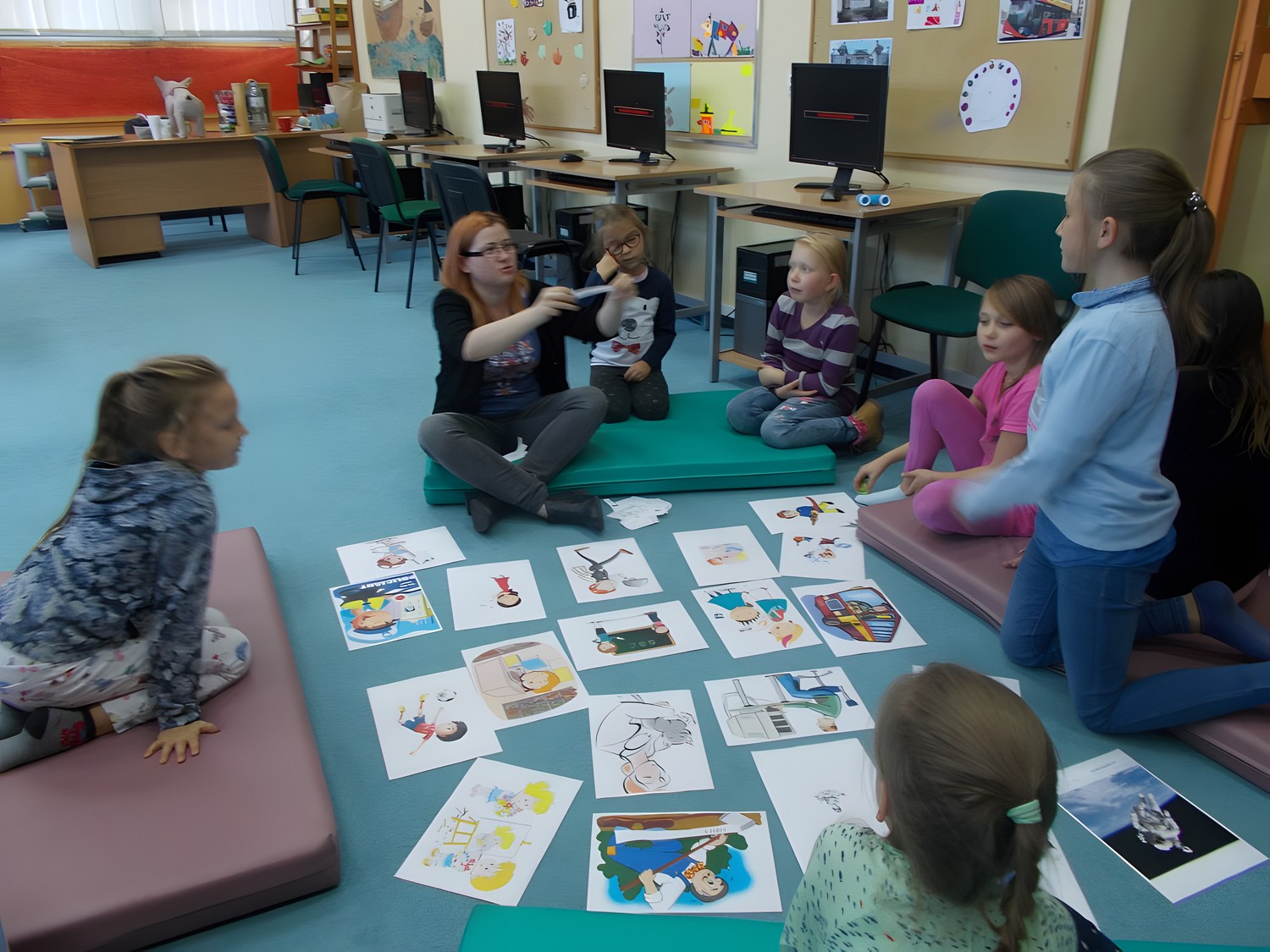 Strażak, astronauta, nauczyciel czy weterynarz, to tylko niektóre zawody które chcieliby wykonywać w przyszłości nasi anglomaniacy. Dzieci poprawnie dopasowywały angielskie nazwy zawodów do obrazków, a także potrafiły wskazać rekwizyty różnych profesji. Z ochotą namalowały zawody, których wykonywanie na dzień dzisiejszy sprawiałoby im satysfakcję. Czwartkową anglomanią zakończyliśmy znaną i lubianą zabawą „Ulica zawodów”, która utrwaliła dzieciom poznane podczas zajęć słownictwo.
