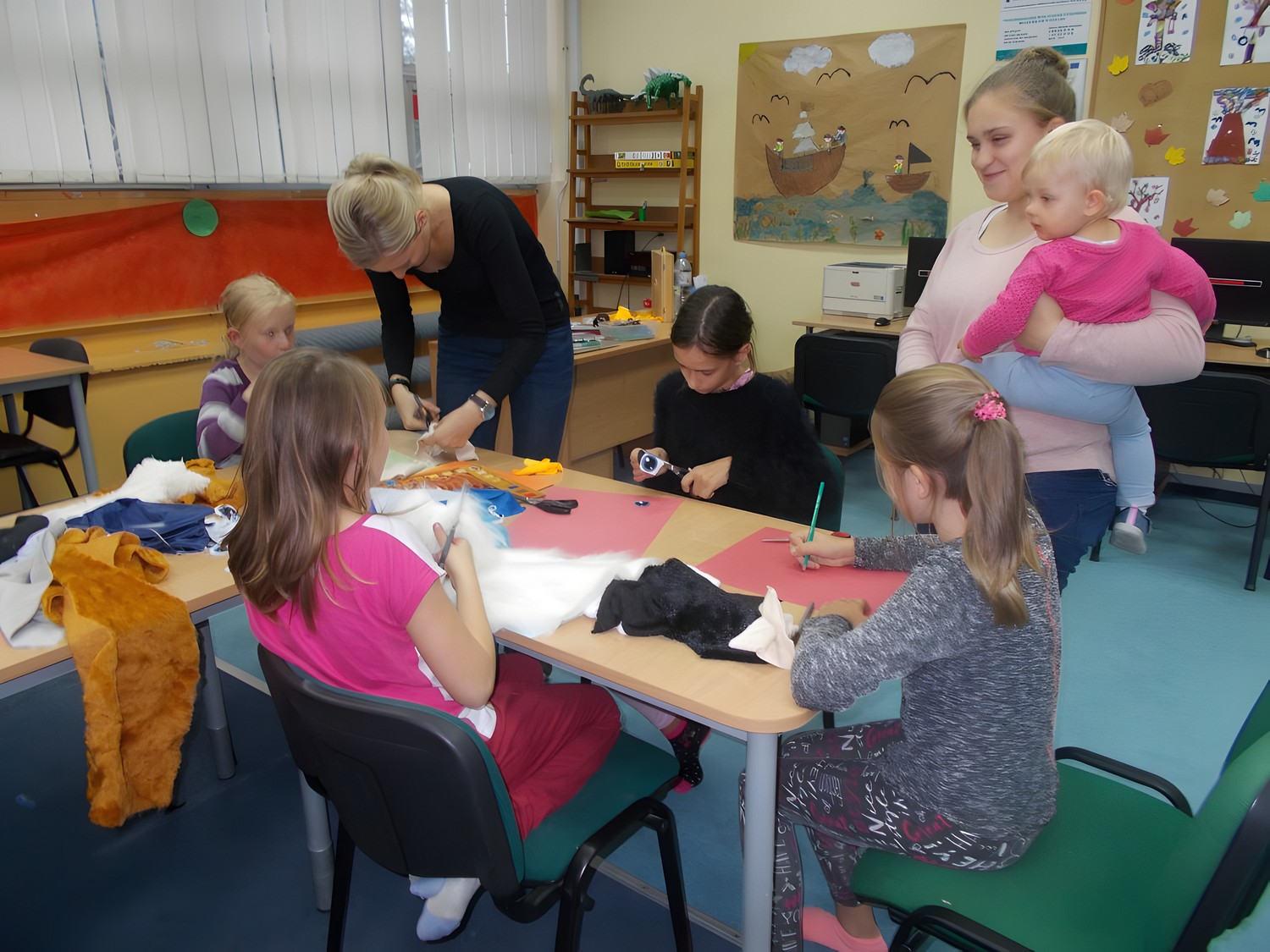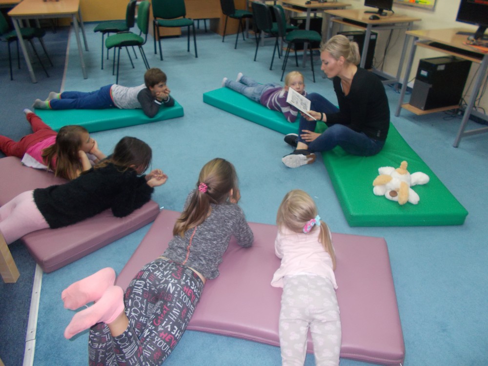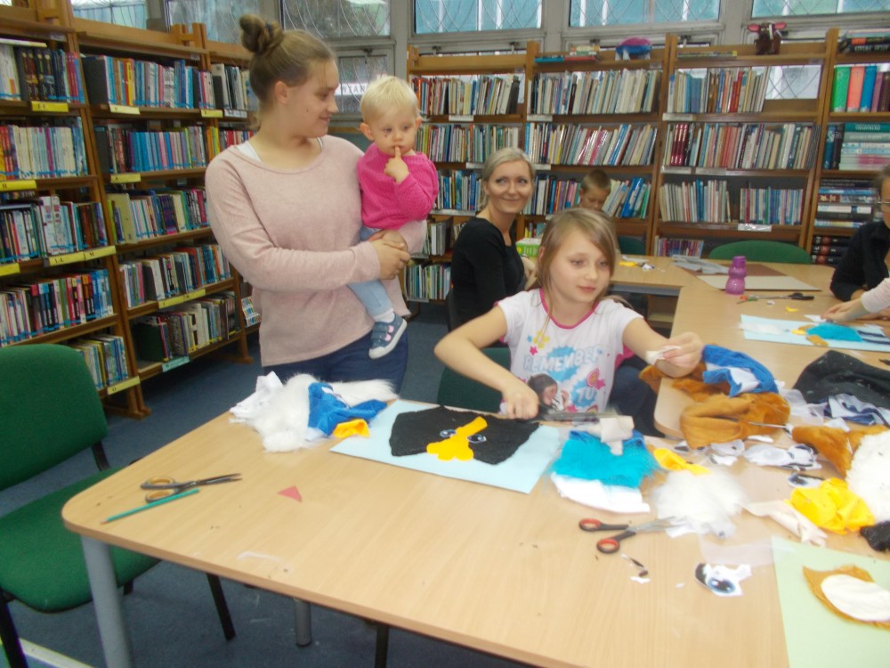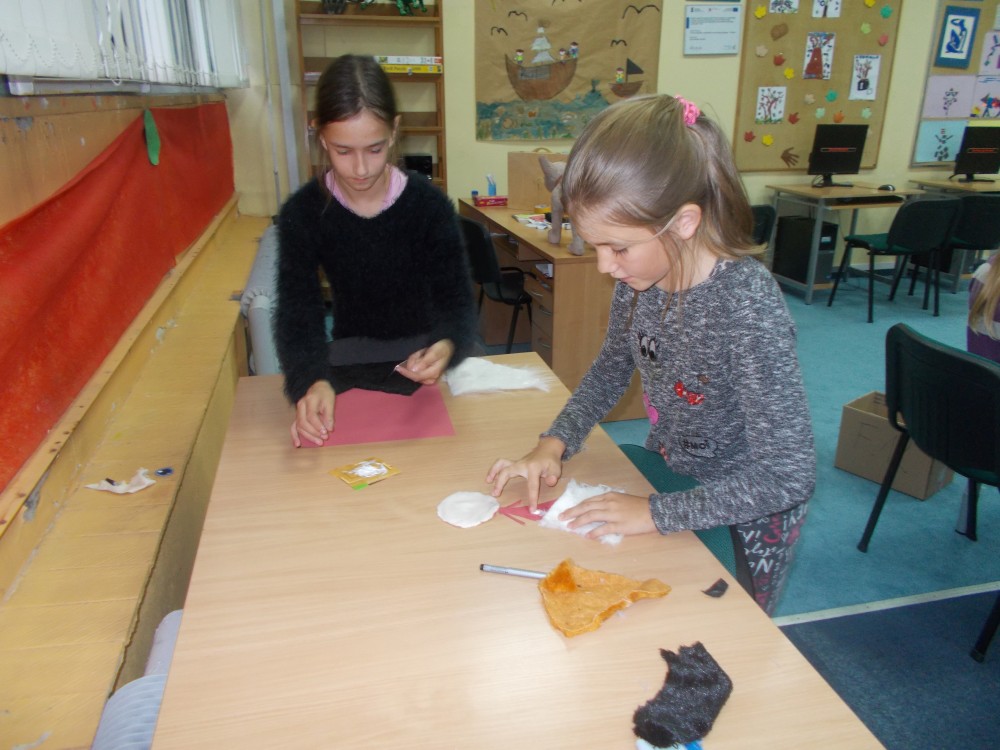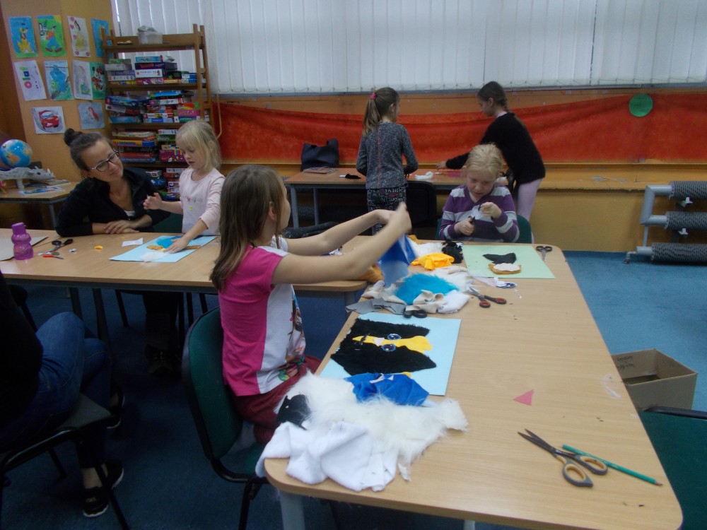 Na czwartkowych zajęciach plastycznych dzieci chętnie wysłuchały fragmentów wspomnianej książki, a następnie wykonały wymyślone przez siebie bajkowe postacie z materiałów, co udowodniło, że dziecięca wyobraźnia nie ma granic. Nie zabrakło również śmiechu i zabaw.