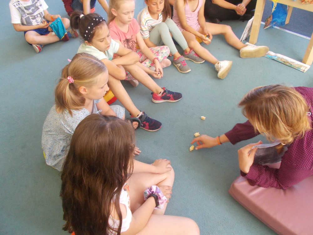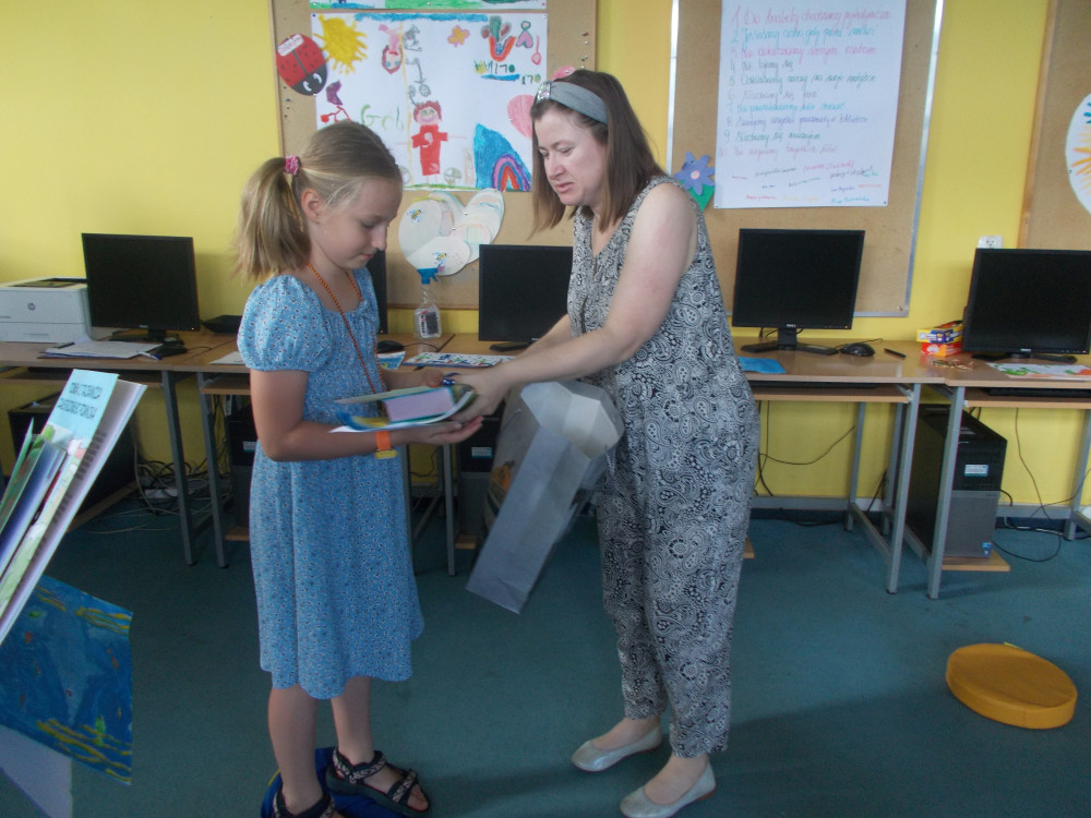 Dzisiejszy dzień rozpoczęliśmy od prezentacji prac plastycznych i wysłuchania Morskich Opowieści, a następnie od nagrodzenia dzieci za ich kreatywność, atrakcyjnymi nagrodami, ufundowanymi przez Stowarzyszenie Bibliotekarzy Polskich, Zarząd Koła nr 1, który wsparł nasze działania, za co serdecznie dziękujemy.