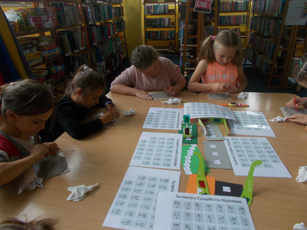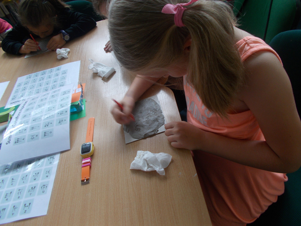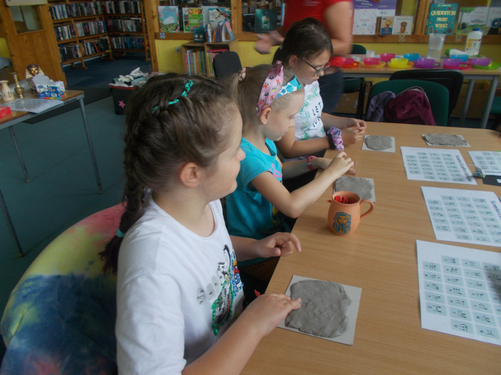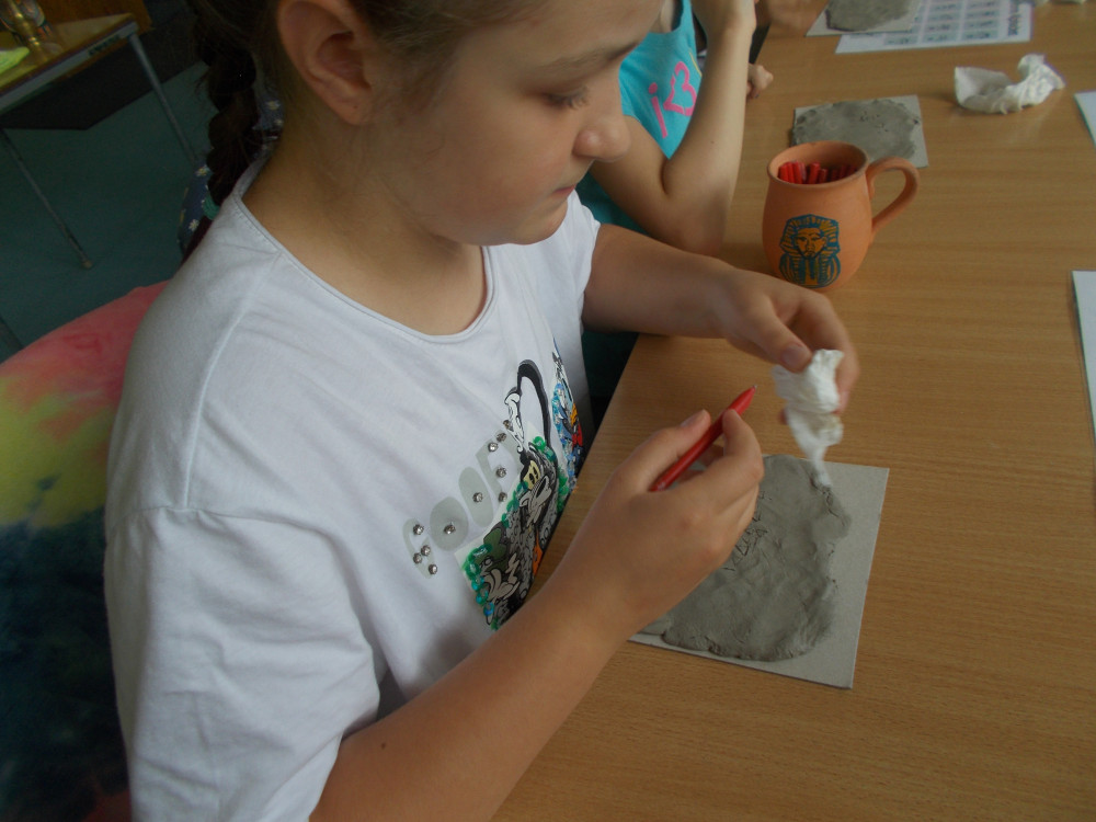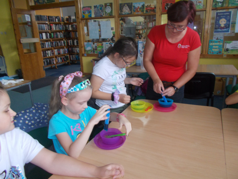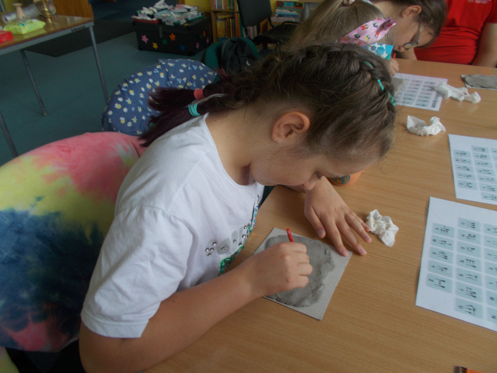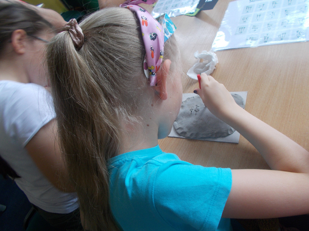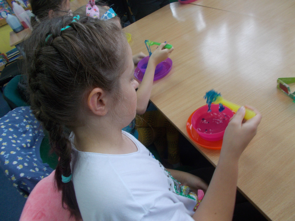 Wczorajszy dzień również był pełen wrażeń. Najpierw oddaliśmy się wesołym zabawom, a następnie odwiedziła nas „Pomysłowa Fabryka”, która przygotowała dla nas rewelacyjne warsztaty, podczas których eksperymentowaliśmy z dźwiękiem, dowiadując się wielu ciekawostek ze świata fizyki. Jakie było zdziwienie najmłodszych, kiedy okazało się, że można ugasić ogień dźwiękiem, czy zagrać melodie palcami na brzegach kieliszków, wypełnionych wodą. W drugiej części warsztatów, dzieci miały okazję wcielić się w rolę małych archeologów, dowiadując się tajemnic na temat tej niesamowitej profesji. Uczestnicy naszych wakacji ,podpisywały gliniane tabliczki egipskimi hieroglifami i pismem klinowym. Na koniec,każde dziecko wykonywało swojego robala z substancji chemicznych.