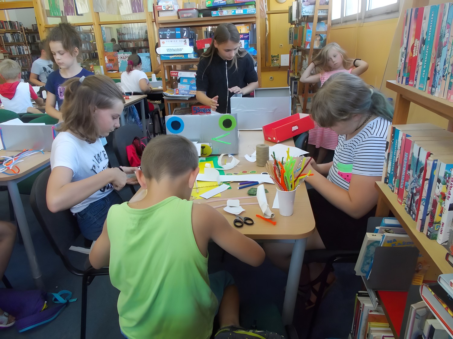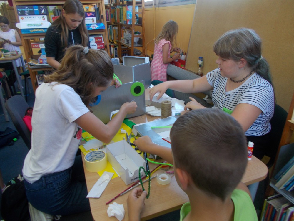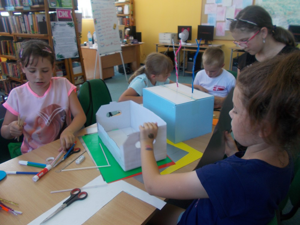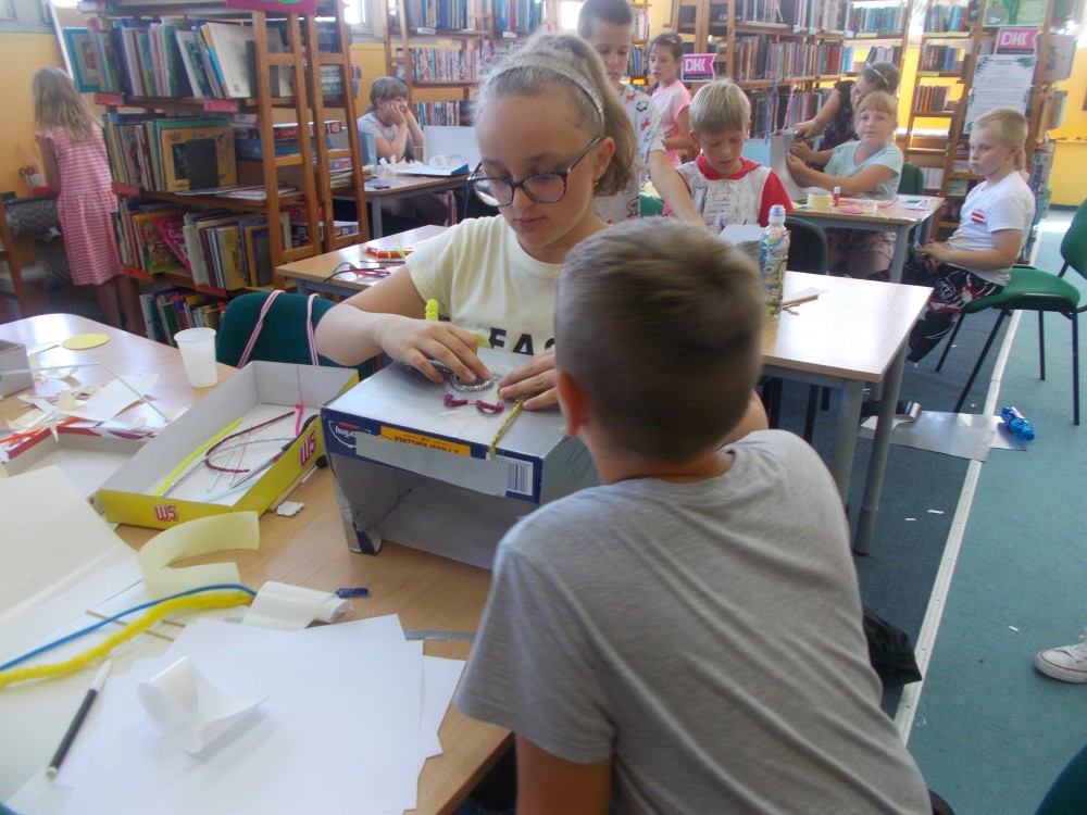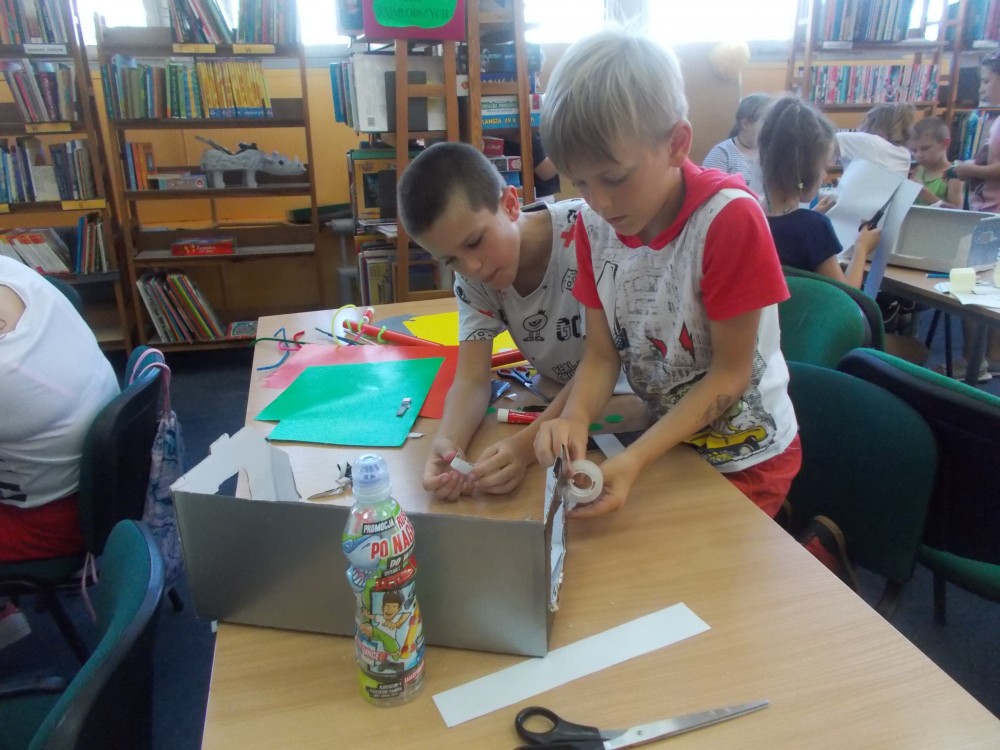 Dziś podczas naszych zajęć w bibliotece rozmawialiśmy o najważniejszych wynalazkach w dziejach ludzkości. Dyskutowaliśmy, jak bardzo ułatwiły nam życie i bez których odkryć nie wyobrażamy sobie naszej codzienności. Historia powstania żarówki, telefonu, samochodu, lodówki czy Internetu były pretekstem do pracy plastycznej, której celem było stworzenie własnego wynalazku. Nasi mali wynalazcy okazali się być bardzo pomysłowi, tworząc innowacyjne przedmioty codziennego użytku, które już wkrótce mogą stać się niezbędne w każdym domu. Grupy naukowców wymyśliły między innymi wielofunkcyjny odkurzacz, czy plecaki, potrafiące szybować. Z całą pewnością, w niedalekiej przyszłości będą to przedmioty poszukiwane i bardzo ekskluzywne.