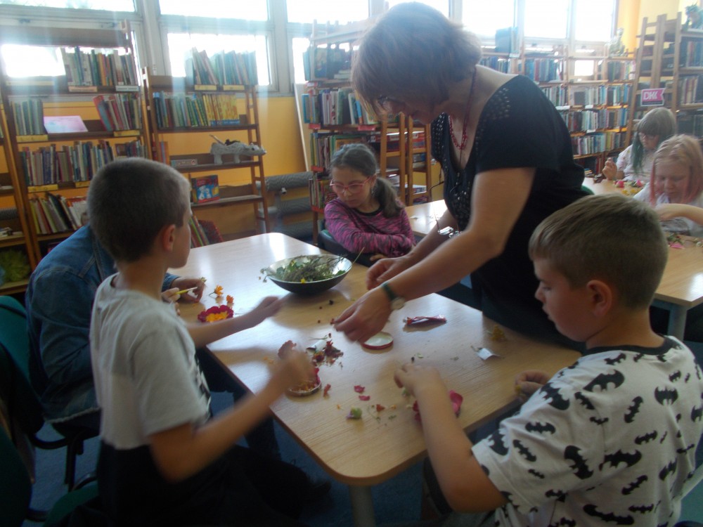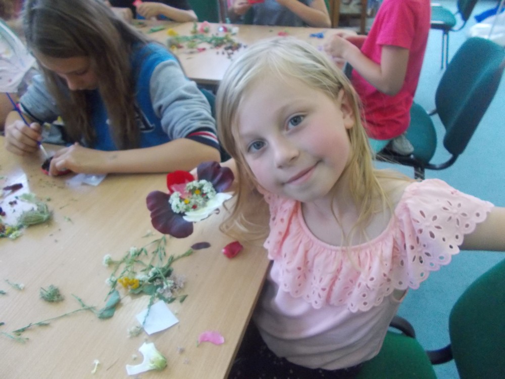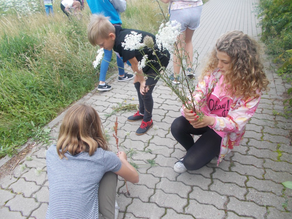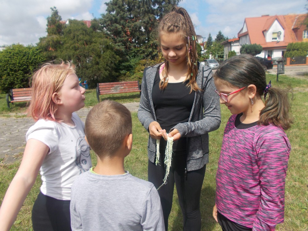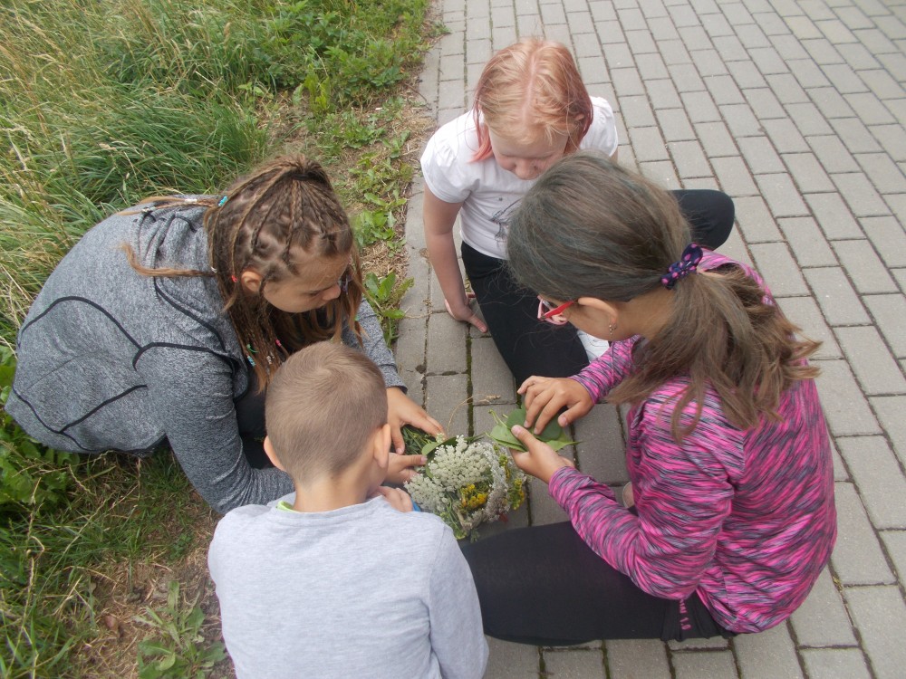 Za nami drugi dzień warsztatów ekologicznych, prowadzonych przez Panią Grażynę Kuras . Na początku zajęć wystąpiła uczestniczka naszych zajęć, Solomiia i opowiedziała o swoich ekologicznych projektach i o swojej stronie na portalu społecznościowym: "Narodzie, pomóż przyrodzie". Reszta dnia upłynęła na układaniu kompozycji kwiatowych na łonie natury, a także wykonaniu pomysłowych, naturalnych magnesów na lodówkę. Aktywność poszczególnych grup była oceniana tym razem pod kątem spostrzegawczości, ponieważ musiały one szukać sznurkowych gąsienic w parku. W tym niezwykle miło spędzonym dniu było niezwykle radośnie.