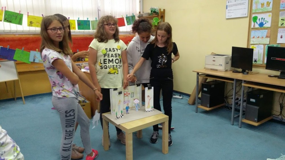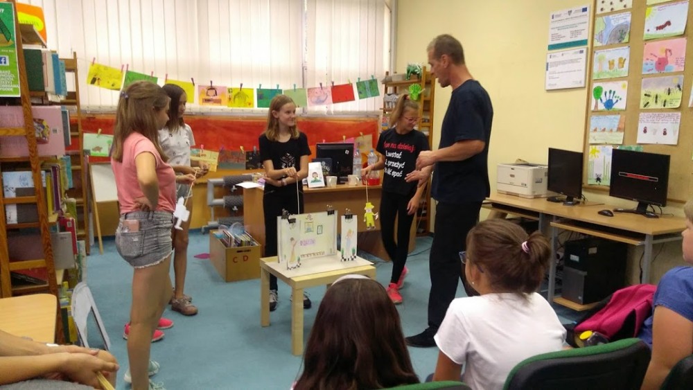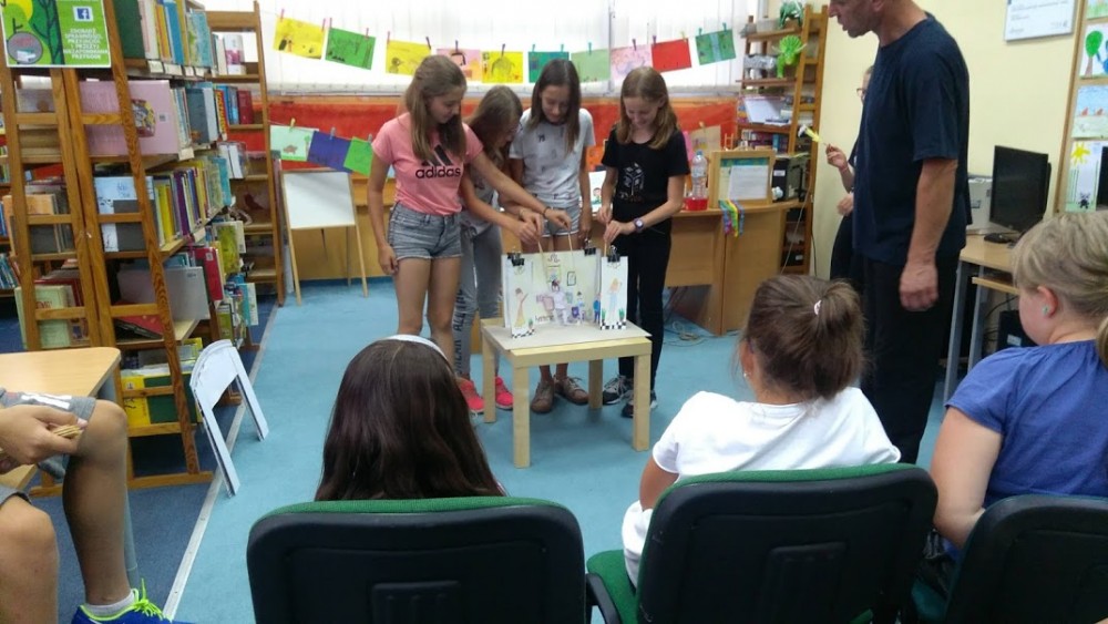 We wtorek rozpoczęliśmy od dyskusji o prawach zwierząt i wesołych zabaw. Punktem kulminacyjnym tego dnia były warsztaty teatru papierowego prowadzone przez aktora ze stowarzyszenia „Akademia Wyobraźni”. Dzieci poznały legendę „O złych sąsiadach” opowiadającej o niezgodzie między mieszkańcami Koszalina i Kołobrzegu. Mali aktorzy wykonali scenografię i postaci z papieru na patyczkach. Następnie, po kilku próbach spektakl został wystawiony, a publiczność była pod wrażeniem.