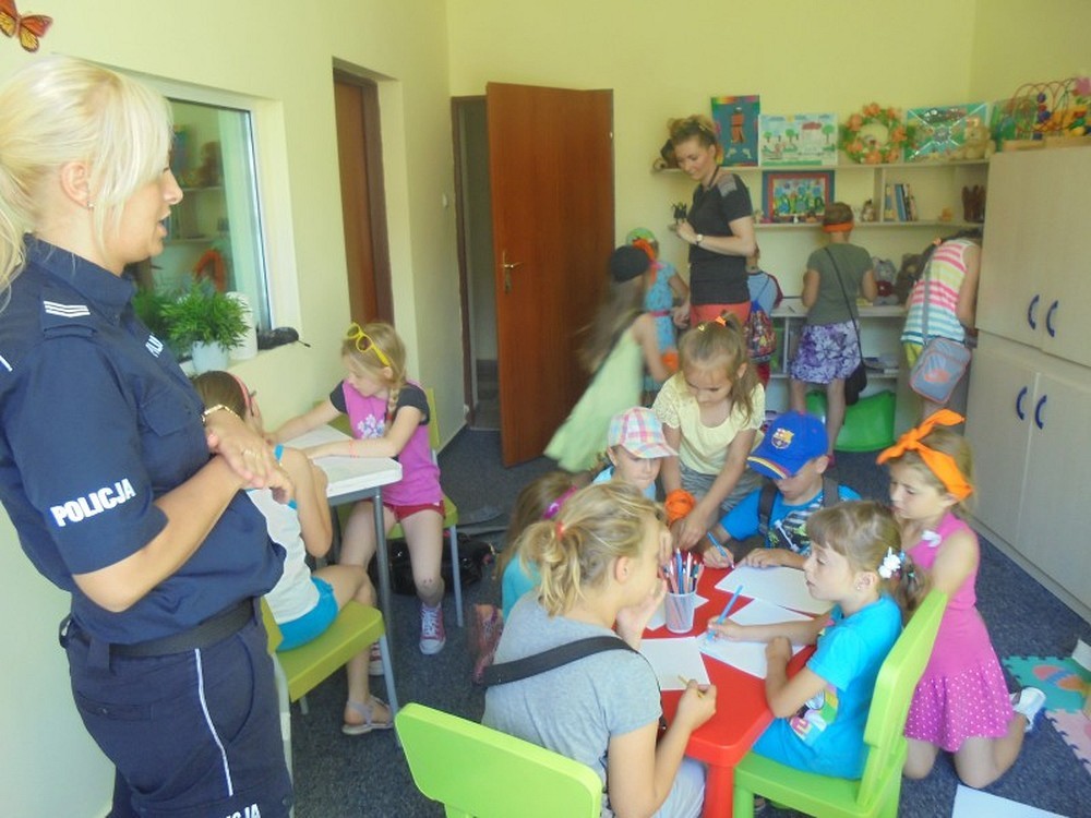 Ostatni dzień wakacji w bibliotece zakończyliśmy wycieczką do Komendy Miejskiej Policji. W komendzie zwiedziliśmy „Niebieski pokój" oraz mogliśmy zobaczyć jak pracują policjanci przy monitoringu koszalińskim. Zapoznaliśmy się z wadami i zaletami zawodu policjanta. Kolejna wycieczka była do naszego koszalińskiego parku i ochłodzenie lekkie przy fontannie dobrze nam zrobiło. Były nawet zawody w jedzeniu cytryny...Miło nam było spędzić wspólnie czas, zapraszamy na zajęcia sierpniowe.