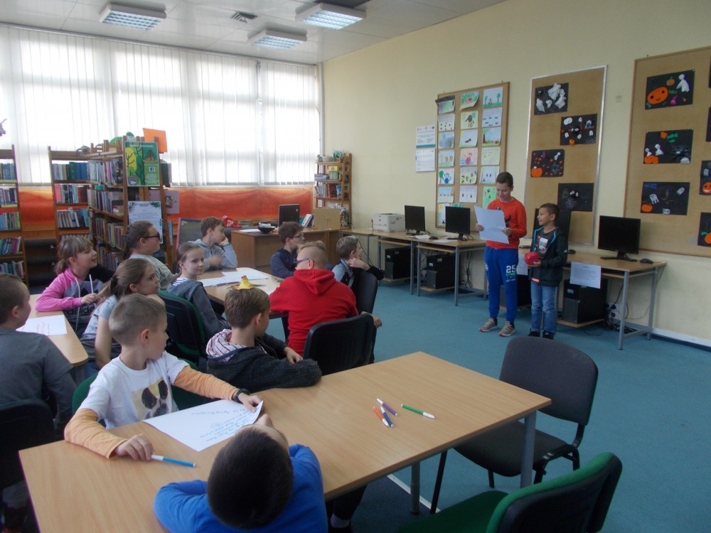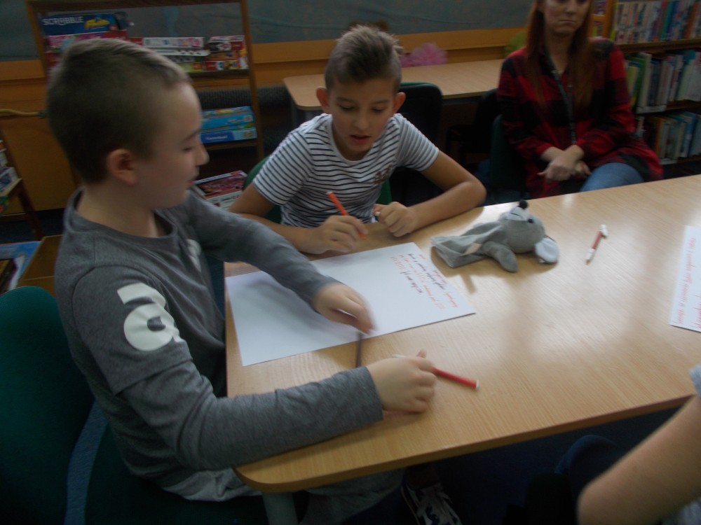 Dziś naszą bibliotekę odwiedzili piątoklasiści ze Szkoły Podstawowej nr 5 w Koszalinie. Podczas zajęć próbowaliśmy znaleźć odpowiedź na bardzo ważne pytanie: mieć czy być? Inspiracją do dyskusji były fragmenty książki „Noskawery” Pawła Beręsewicza, opowiadającej historię Zuzi Majdan, która jako jedyna z klasy nie została zaproszona na urodziny, ponieważ nie miała modnego gadżetu noskaweru, czyli pokrowca na nos, którego reklamę stworzył specjalista od spraw marketingu, Paul Cooper, a sam przedmiot nosi muzyczny idol dzieci Jackson Beever. Jak skończyła się ta historia? Czy Zuzia ulegnie tej modzie? Czy noskawery już zawsze będą na czasie? Koniecznie przeczytajcie tą pozycję, by się o tym przekonać.