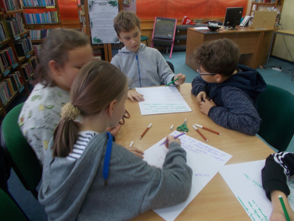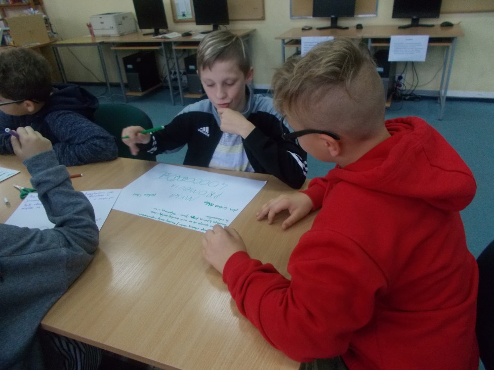 W dzisiejszym świecie dużą rolę odgrywają reklamy, które kuszą zarówno dzieci i dorosłych. Uczniowie mieli okazje wcielić się w rolę copywriterów i tworzyli plakaty reklamujące przedmioty o małej wartości, między innymi kostki do gry, nożyczki czy plastikowe okulary. To ćwiczenie przekonało ich, że siła dobrego hasła reklamowego produktów zwiększa cenę, którą klienci są w stanie za nie zapłacić.