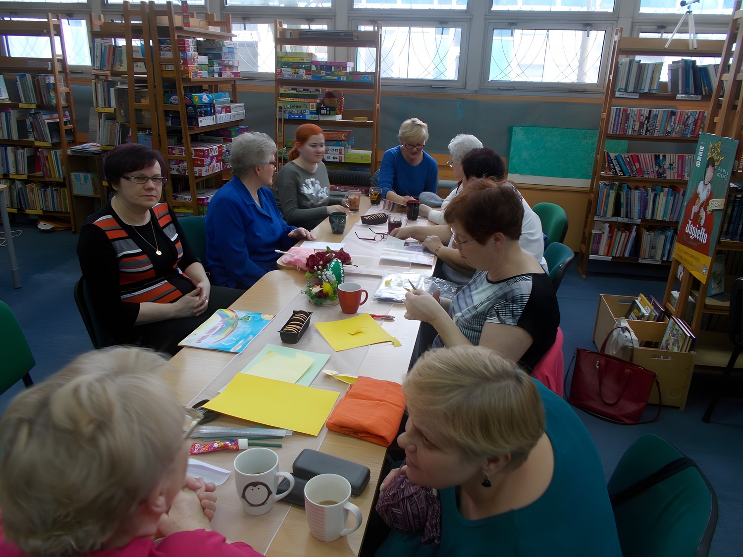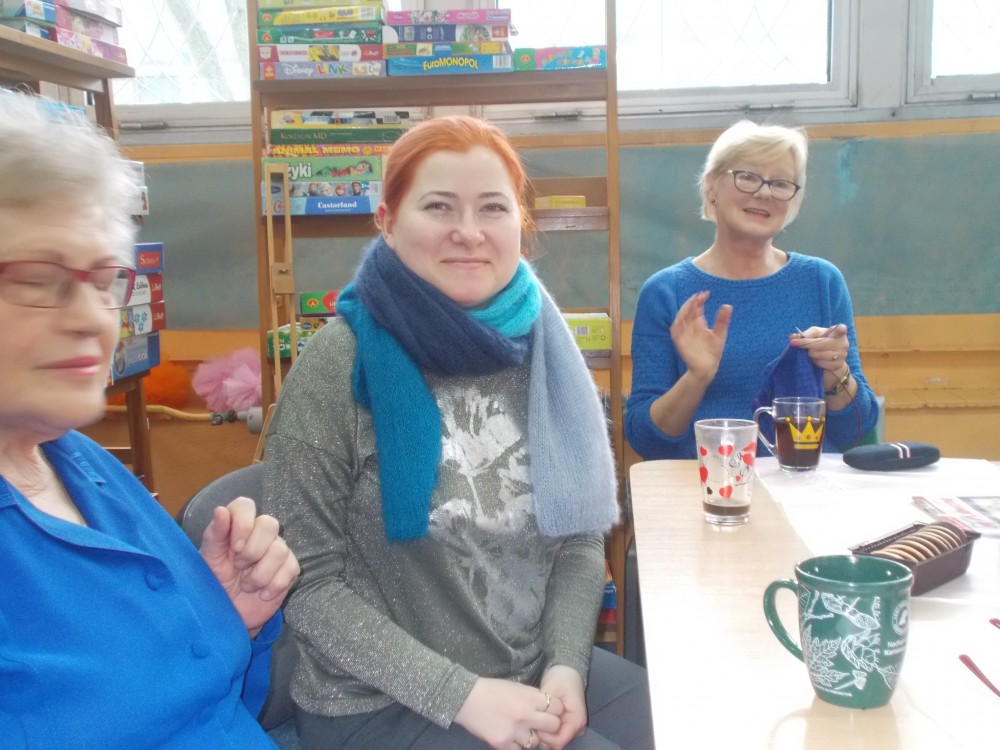 Dziś spotkałyśmy się z Paniami z naszego Klubu „12 oczek”, by podzielić się radami na temat nowych technik rękodzielniczych. Nasi goście przynieśli zrobione przez siebie na drutach szaliki, czapki i serwetki. Podczas naszego spotkania wkradł się też wiosenny klimat, bowiem jedna z Pań pokazała nam wykonane przez siebie wielkanocne ozdoby.