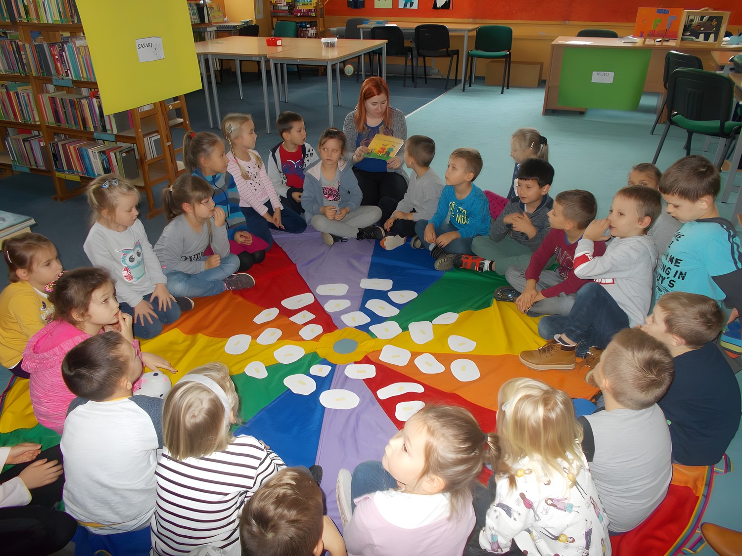 Dzisiaj naszą bibliotekę odwiedziła grupa "Tygrysków" z Przedszkola nr 13 w Koszalinie. Spotkanie było poświęcone zwierzętom domowym. Dzieci wskazywały na tak ważne aspekty, jak obowiązek opieki nad pupilem i konieczność wiedzy o zwyczajach posiadanych zwierząt. Z uwagą wysłuchały opowiadania Elżbiety Zubrzyckiej pt. „Czy mogę pogłaskać psa?” uświadamiającej, jak groźne może być głaskanie cudzych czworonogów bez zgody właściciela . Oprócz tego przedszkolaki bezbłędnie zakwalifikowały pokolorowane przez siebie zwierzęta do różnych grup, jak zwierzęta dzikie, wodne, leśne i domowe.