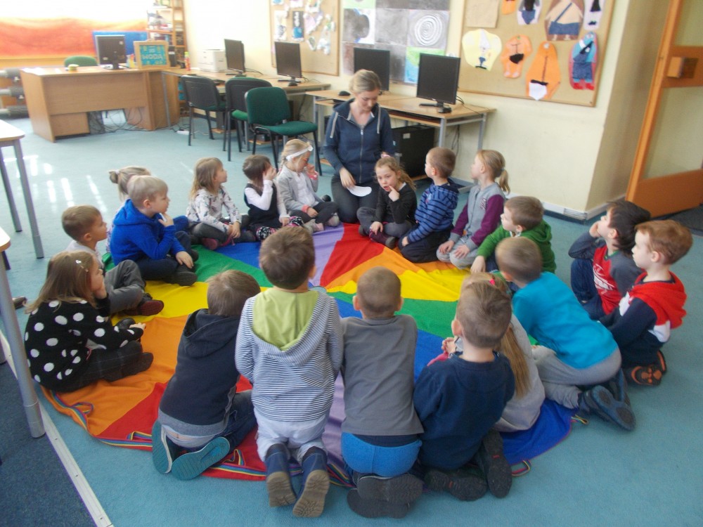 Nasi mali goście wspaniale poradzili sobie z pytaniami dotyczącymi kolorów oraz chętnie wzięli udział w przygotowanych dla nich zabawach.