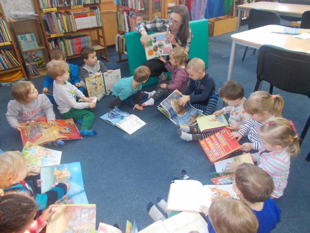 Dzisiaj odwiedziła nas trzyletnia grupa ,,Lisków” z Przedszkola nr 13 w Koszalinie, które chciały poszukać w bibliotece informacji na temat patrona ich grupy. Przedszkolaki z zapałem wyszukiwały zdjęć rudego zwierzątka w rozmaitych książkach, a nauczycielka czytała na głos znalezione, interesujące ciekawostki.