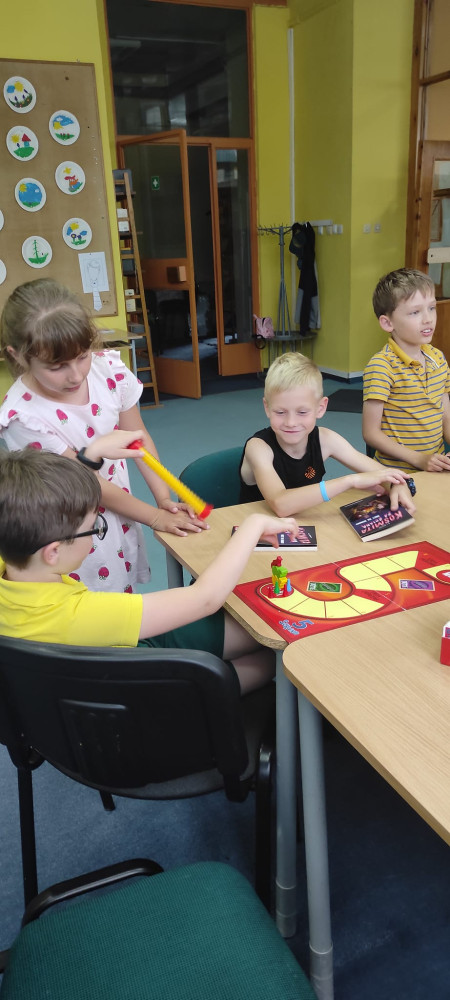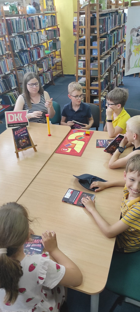 Za nami już ostatnie spotkanie Dyskusyjnego Klubu Książki dla Dzieci przed uprawnionymi wakacjami. Dziś na warsztat wzięliśmy książkę "Kosmita za ścianą. Obcy na biwaku" A.I.Newton. Ta krótka opowieść była pretekstem do rozmowy o sile przyjaźni i o tym, czy używanie magicznych mocy do osiągnięcia swoich celów jest uczciwe? To spotkanie było bardzo emocjonujące. Przyszło ośmioro naszych Dkk-owiczów, co bardzo nas ucieszyło. Na koniec graliśmy w 5 sekund i Dixit. Wszyscy klubowicze zapowiedzieli, że na jesieni meldują się u nas w pełnym składzie. I kto mi powie że dzieci nie czytają? :)