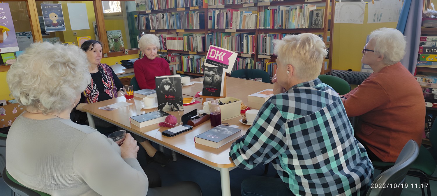 Ikona seksapilu, prekursorka wolnej miłości, kolorowy ptak, skandalistka- tak określiły Kalinę Jędrusik klubowiczki Dyskusyjnych Klubów Książki, podczas rozmowy o książce „Niemoralna Kalina” Uli Ryciak. Rozmowa była bardzo ciekawa i dotyczyła nie tylko tej pięknej i kontrowersyjnej aktorki oraz piosenkarki, znanej z „Kabaretu Starszych Panów”, ale też trudów zawodu aktorstwa i oceny jej moralności z punktu widzenia jej doświadczeń życiowych. Porównywana do Merlin Monroe nie mogła odnaleźć się w polskim środowisku artystycznym. Artystka śpiewająca „Bo we mnie jest seks” była z pewnością nietuzinkowa i ekscentryczna i taka na zawsze pozostanie w naszej pamięci. Podczas spotkania pokazałam też Paniom biografię Kaliny, napisaną w zupełnie innym stylu przez Dariusza Michalskiego.