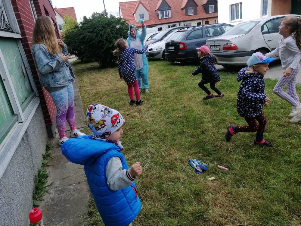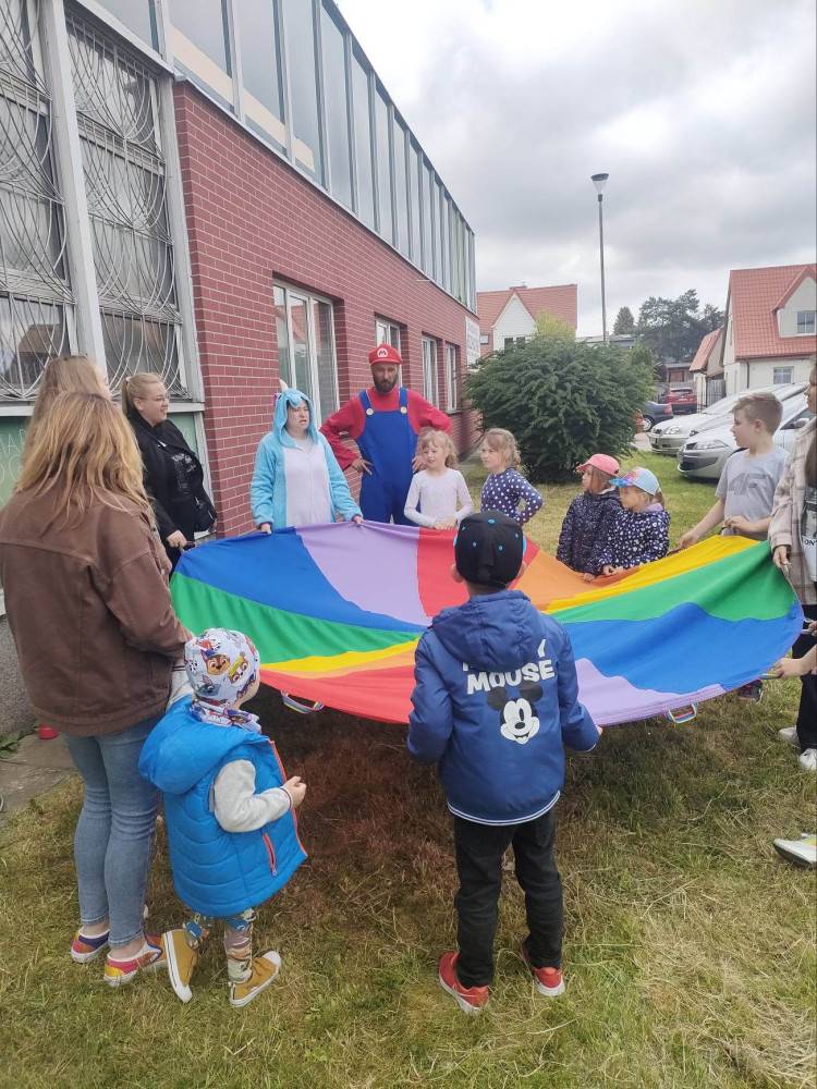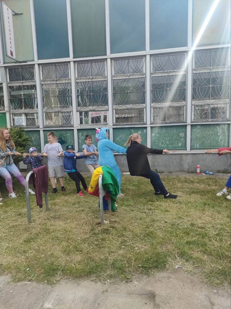 Wczoraj specjalnie dla dzieci przygotowaliśmy razem z Przemysławem Piotrowiakiem, aktywnym mieszkańcem Osiedle Morskie imprezę dla dzieci z okazji Dnia Dziecka oraz Tygodnia Głośnego Czytania . Głośne czytanie książki "Mieszkamy w książce" Mo Willems, która wywołała salwy śmiechu u dzieci, zabawy z chustą, puszczanie baniek, przeciąganie liny czy konkurs na najpiękniejszy wakacyjny rysunek kredą, to tylko niektóre z aktywności na świeżym powietrzu przed naszą biblioteką. Dzieci zadowolone i uśmiechnięte chętnie wzięły udział w tej rozrywkach, w międzyczasie dzieci dołączały, zainteresowane tym co się dzieje.