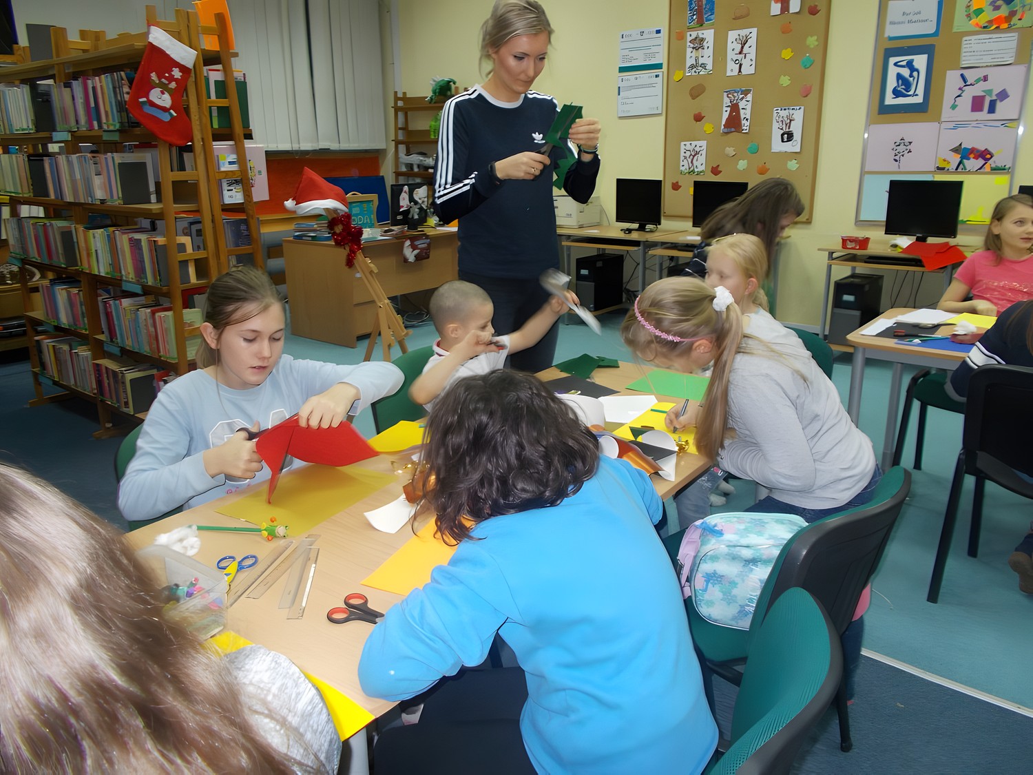 Tym razem nasze czwartkowe spotkanie rozpoczęliśmy od przeczytania fragmentu przygód „Elfa i pierwszej gwiazdki”, znanego autora Marcina Pałasza. Dzieci z uwagą wysłuchały historii, po czym dyskutowaliśmy o świątecznych symbolach. Zadaniem plastycznym było stworzenie najpiękniejszej ilustracji związanej z grudniowymi tradycjami. Ich kreatywność i twórczość przerosła nasze najśmielsze oczekiwania.