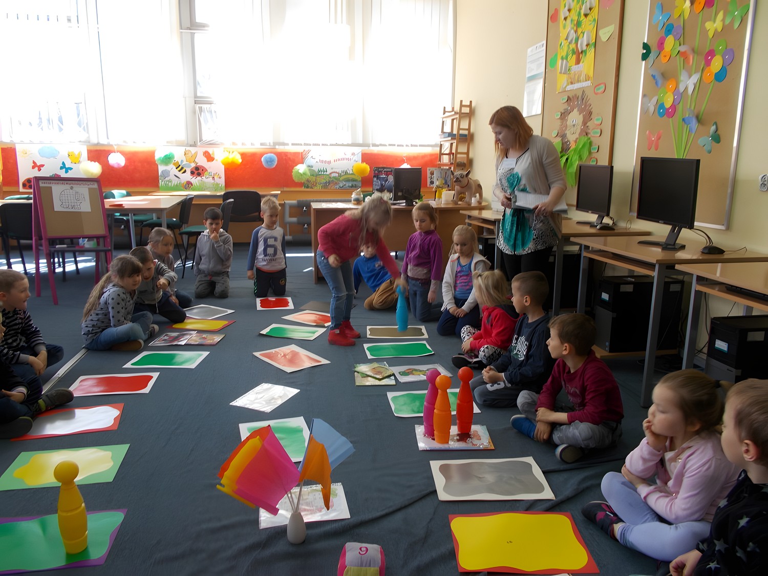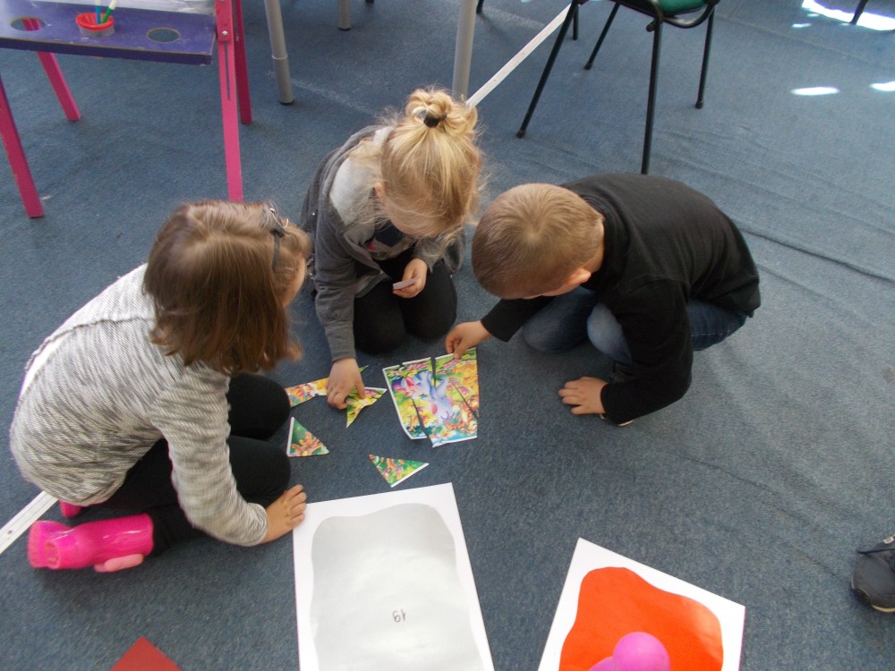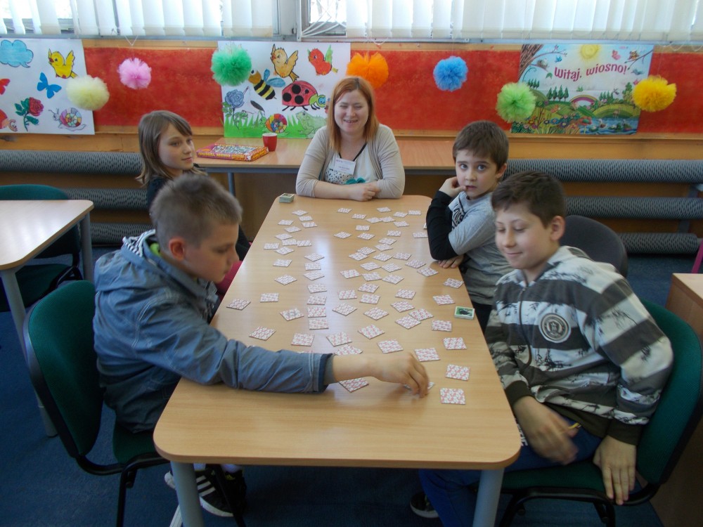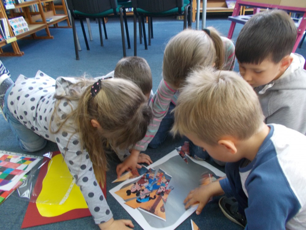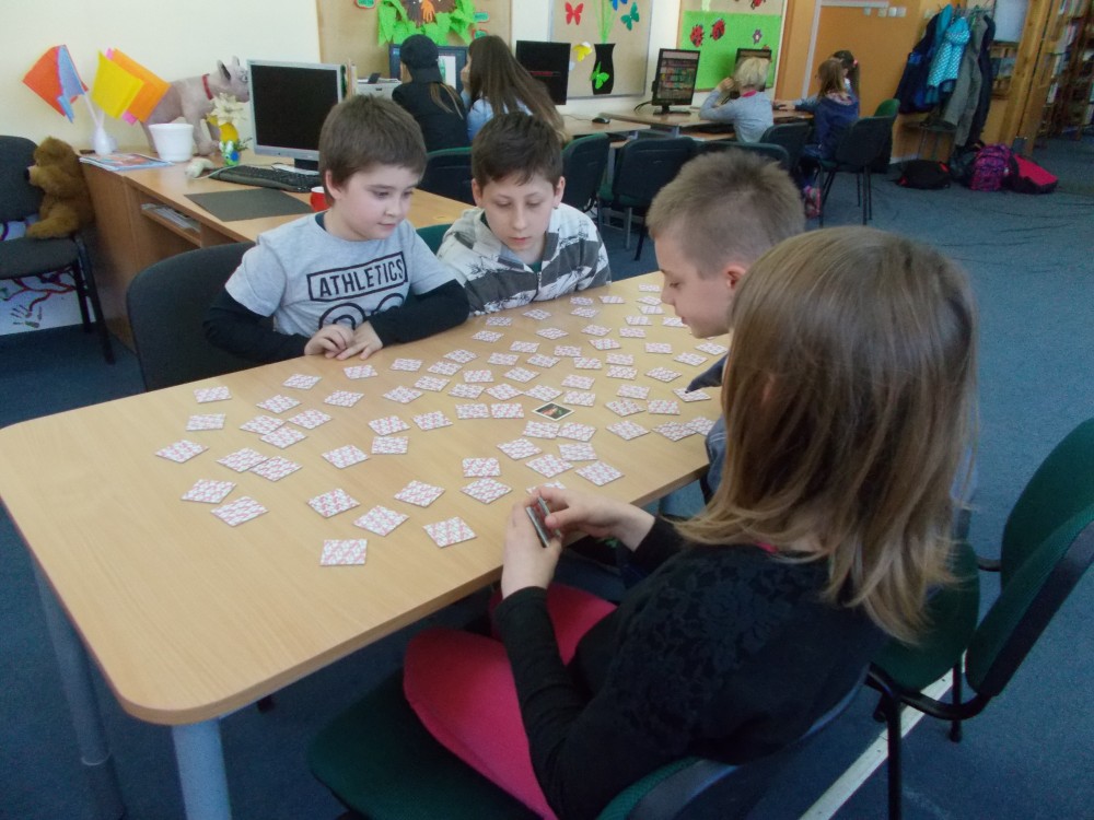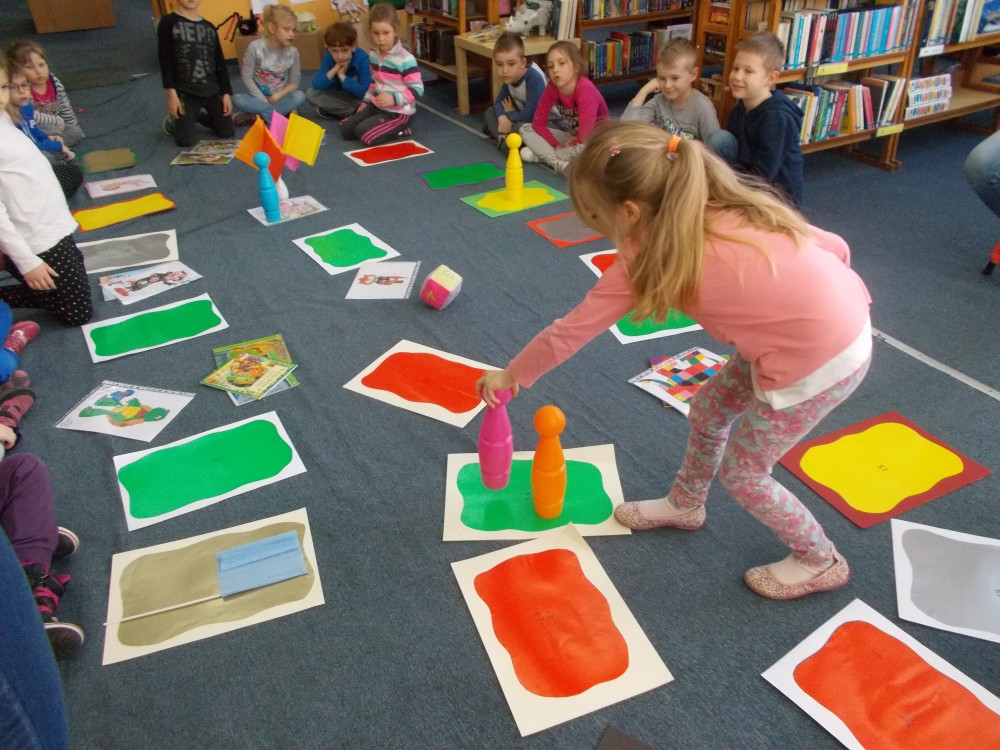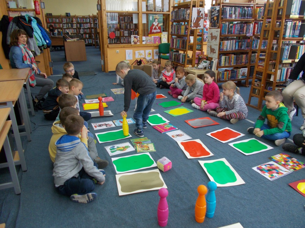 Biblioteka to miejsce, gdzie oprócz czytania można się świetnie bawić. Postanowiłyśmy stworzyć dużą grę planszową „Baśniowa przygoda” dla dzieci z Przedszkola nr 13 w Koszalinie. Odwiedziły nas cztery grupy sześciolatków: Misiaczki, Smerfy, Tygryski oraz Wiewiórki. Emocje sięgały zenitu, gdy w duchu rywalizacji i dobrej zabawy pionki posuwały się po planszy. Co jakiś czas na najmłodszych czekały zadania dotyczące takich znanych bajek, jak „Franklin”, „Smerfy”, czy „Elmer”. Popołudniu zaś nasi stali bywalcy rozegrali turniej gry „Memory".