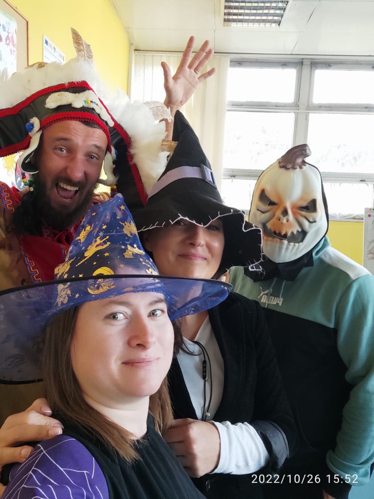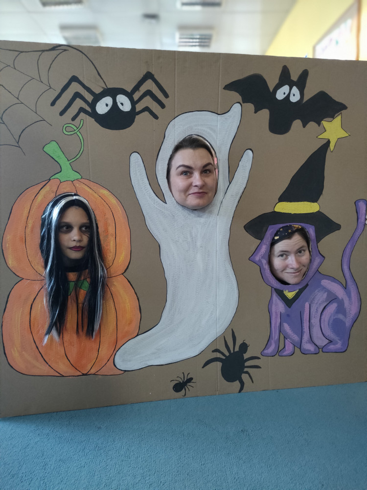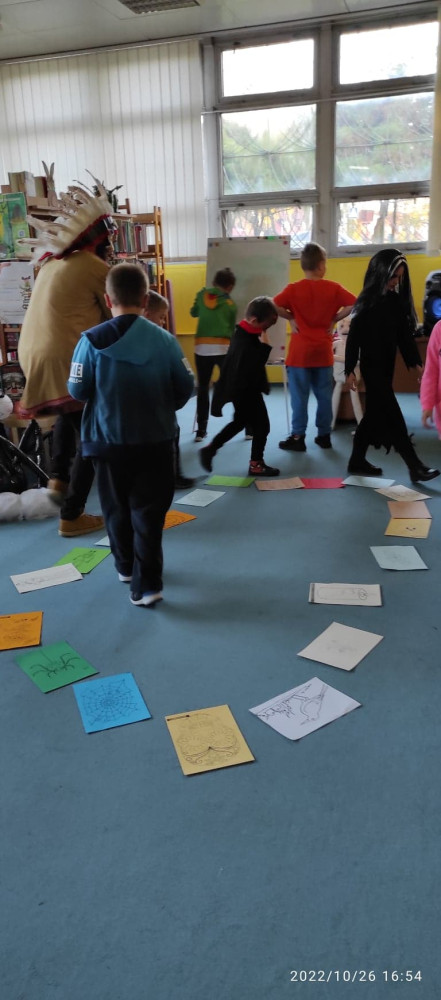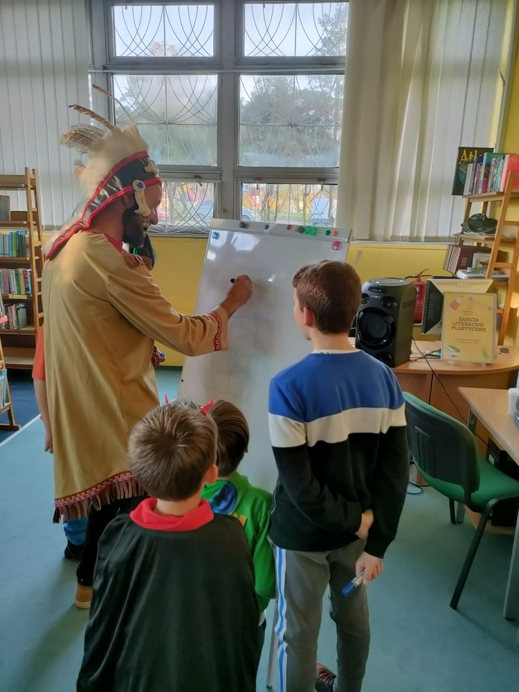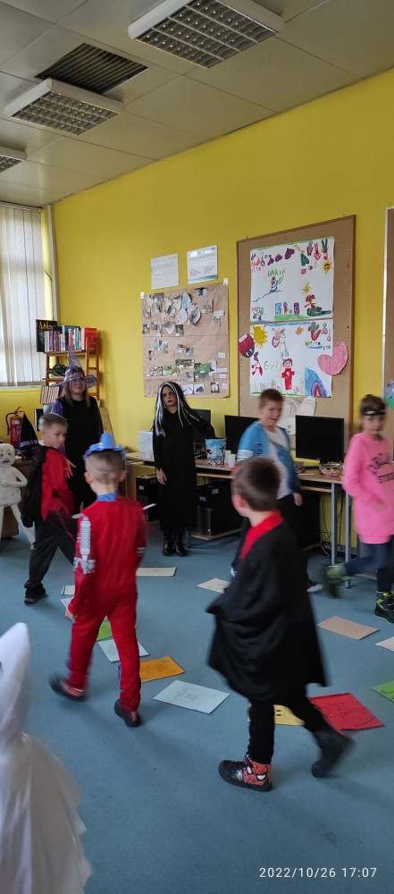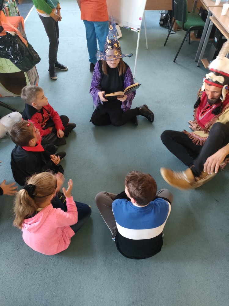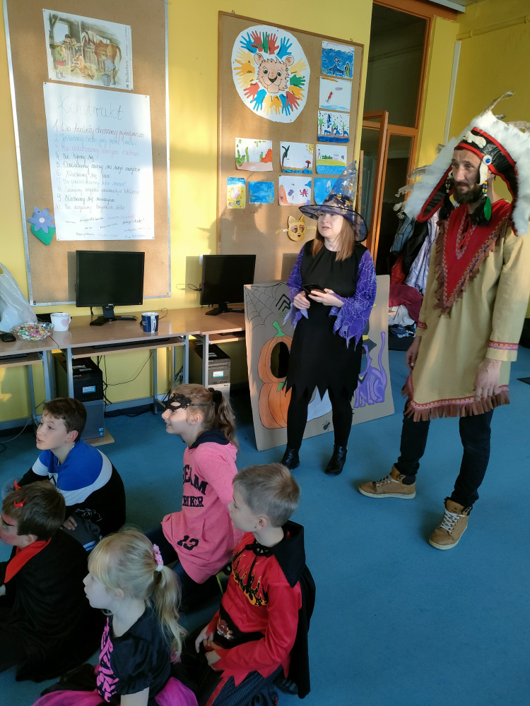 Działo się wczoraj w naszej bibliotece! Celebrując amerykańskie święto, jakim jest halloween odwiedzili nas wczoraj Ci mali i C duzi mieszkańcy Osiedla Morskiego przebrani za duchy, wampiry, czarownice a nawet macochę z "Królewny Śnieżki". Mieliśmy całą plejadę upiornych postaci, więc nie mogło zabraknąć opowieści z dreszczykiem, halloweenowych kalamburów czy przechadzki ulicą strachu. Chętni wykonywali też czarownice, które już wiszą na naszej wystawie. Jak zwykle mogliśmy liczyć na pomoc naszego strasznego indiańskiego wodza i jego upiornego przyjaciela, znanych wszystkim w okolicy, którzy mieli ssstrasznie duże serce. Było przerażająco śmiesznie i wesoło, można było umrzeć ze śmiechu.